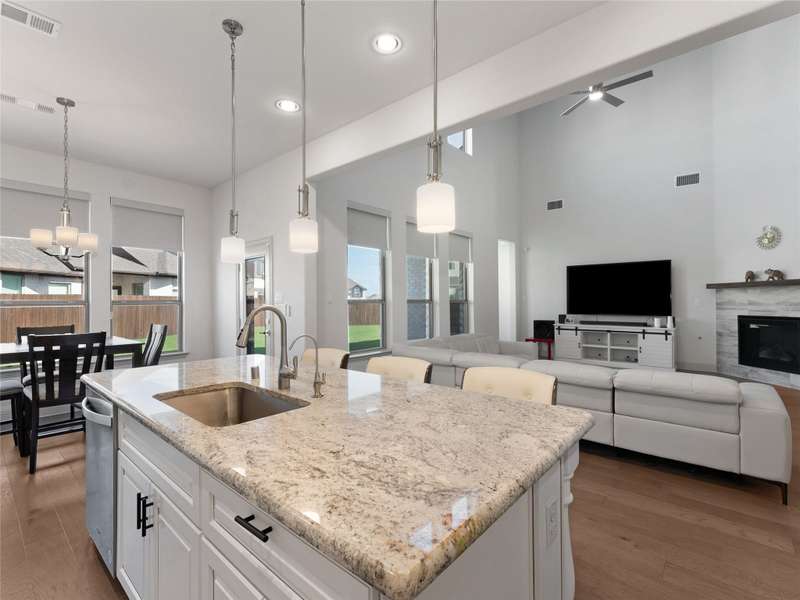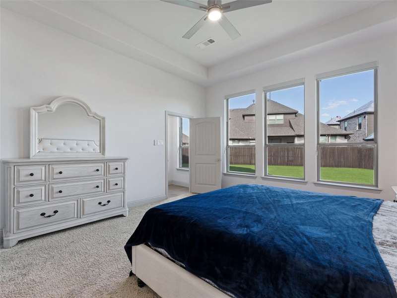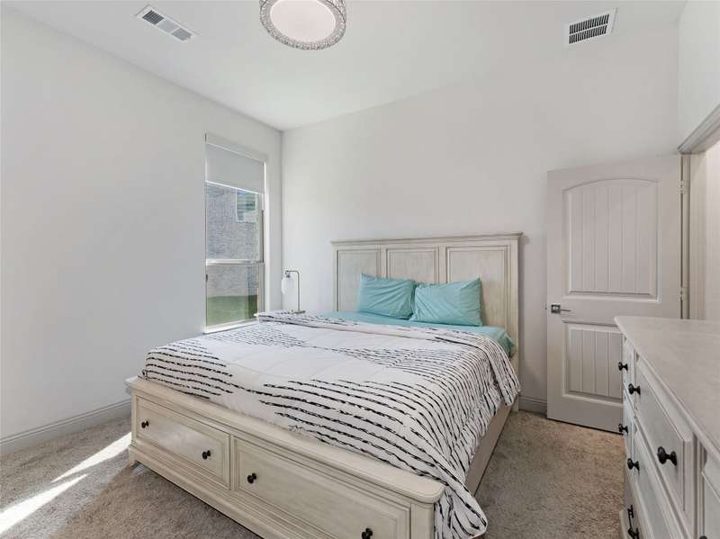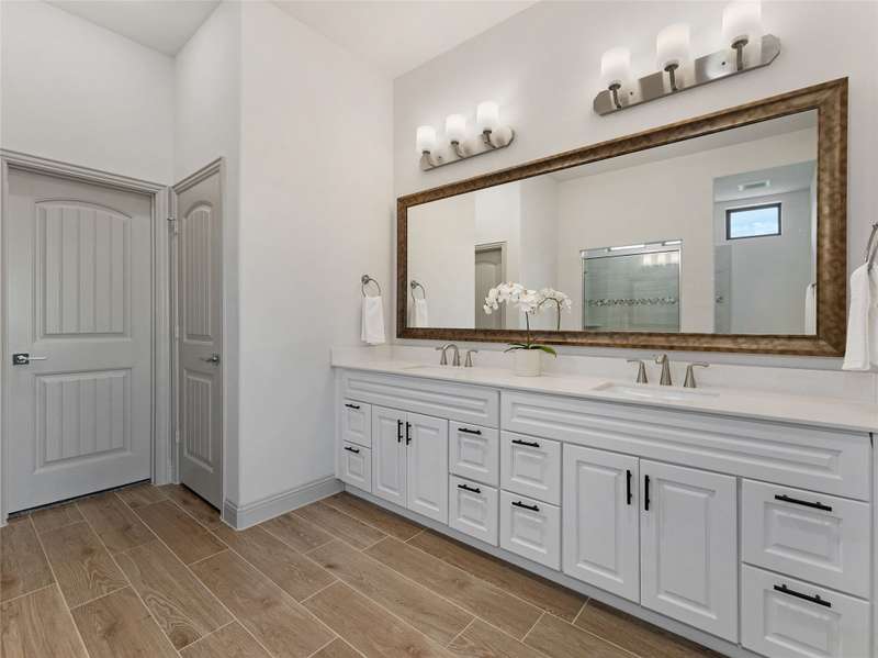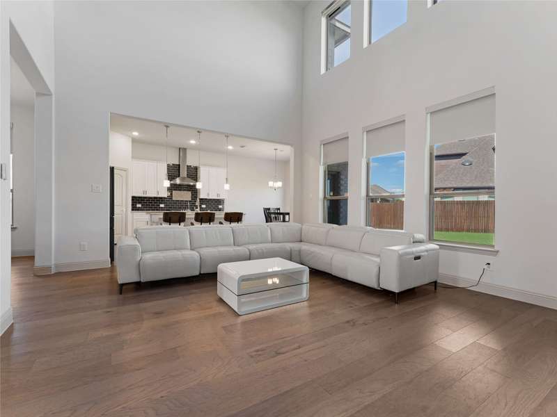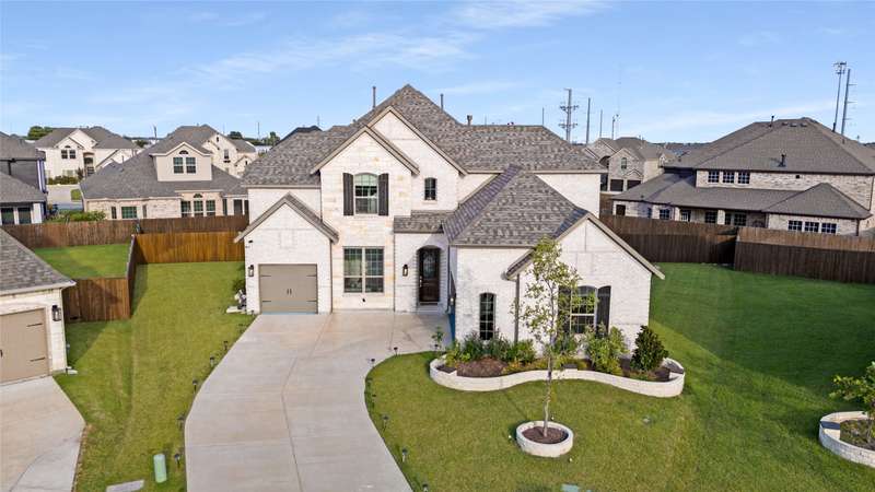 Huge pie shaped lot in the beautiful Woodbridge community of Wylie. Just around the corner from shopping, dining, grocery, and FM 544. Step inside to a bright and welcoming interior featuring soaring ceilings in the foyer and living room, engineered wood flooring, and a thoughtfully designed layout. The main level offers two bedrooms and two full bathrooms, including a luxurious primary suite complete with a soaking tub, large walk-in glass shower, and a spacious closet. The gourmet kitchen has beautiful granite countertops, a white farm sink, stainless steel appliances including a convection microwave and oven, a 36 gas cooktop, and a large walk-in pantry. Upstairs, youll find two additional bedrooms, a spacious game room, and a dedicated media room perfect for movie nights, entertaining, or relaxing. Enjoy outdoor living with a large covered patio, extended concrete pad, and lush backyard, ideal for cooking out, unwinding, or playing. Additional upgrades include JellyFish lighting around the entire home, a water softener and purifier, remote-operated blinds on most windows, and epoxy-coated floors in the spacious three-car garage.