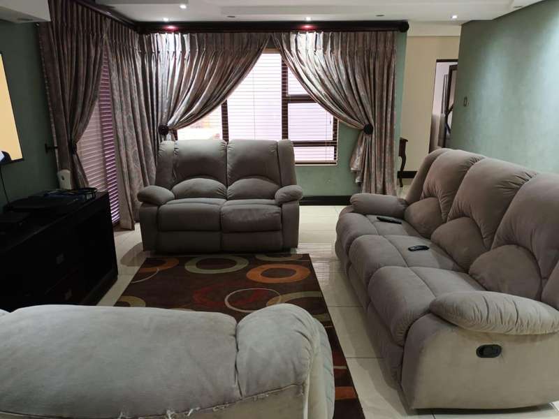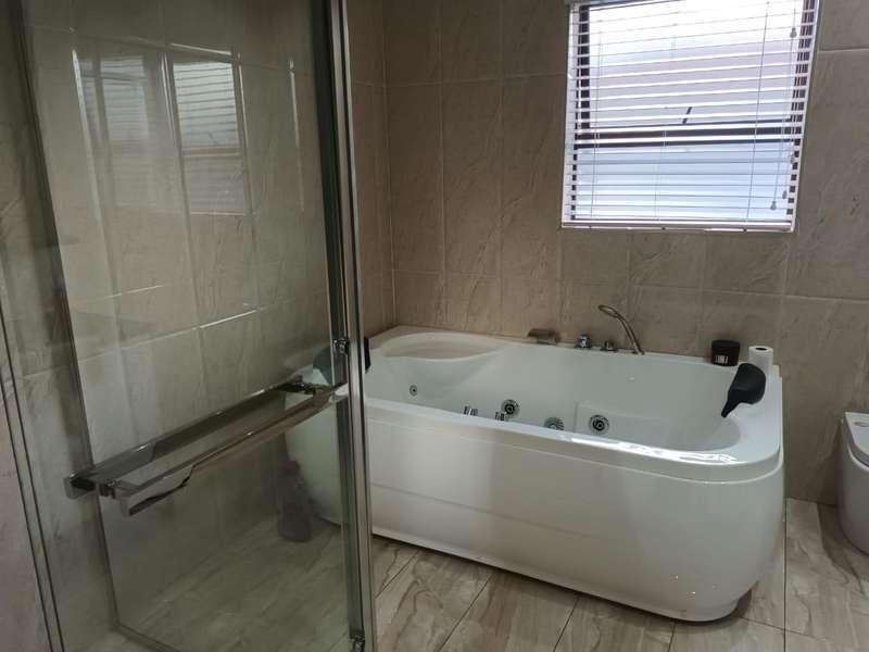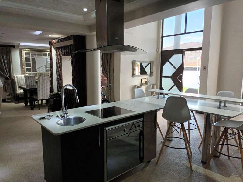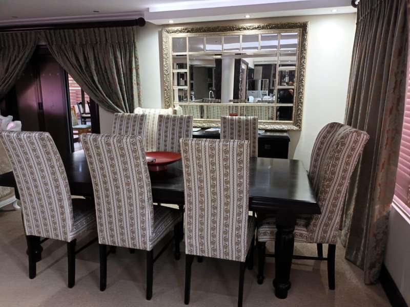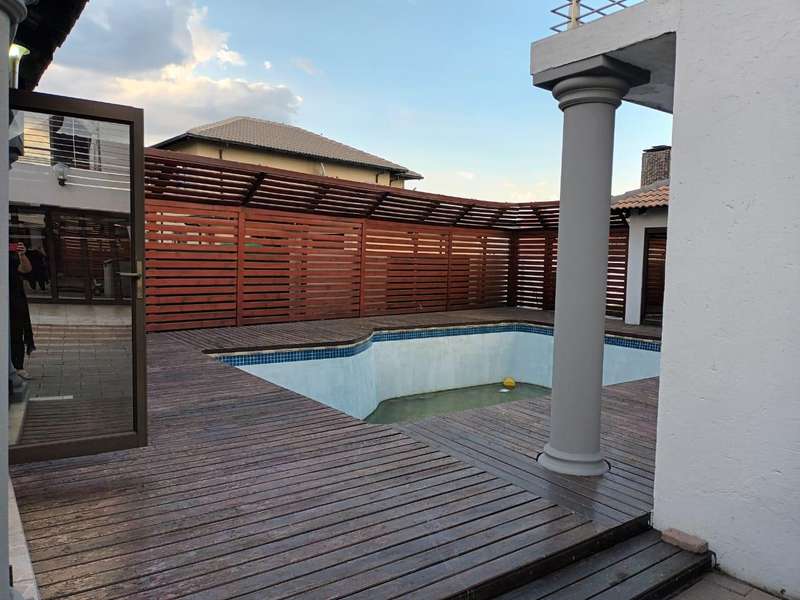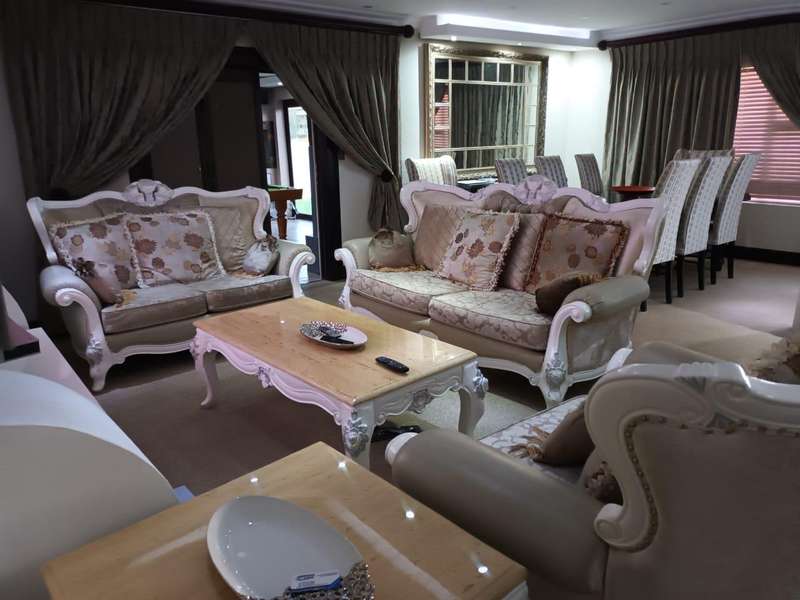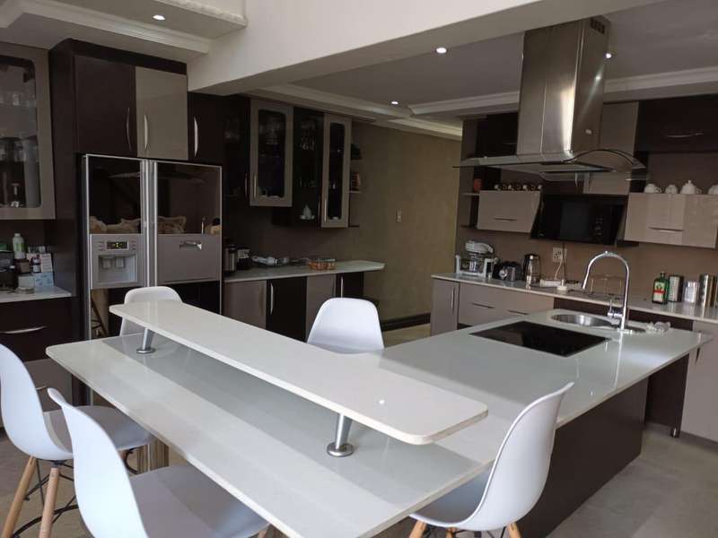 This stunning home offers 9 bedrooms, 6.5 bathrooms all en suites (5 bedrooms upstairs and 4 down stairs) Lounge, dining room, tv room, entrance hall, modern kitchen with separate scullery/laundry and walk in pantry. Entertainment area with built in braai. Pool with clubhouse. Garage space for 5 vehicles with direct access into home. Extras offered include fire place, jojo with pump, generator and prepaid meter. Established garden. Pet friendly. Call me today to view