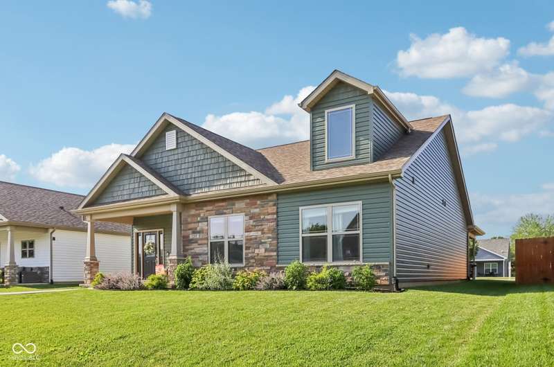 Stop the scroll-your dream home just dropped at 1209 E Wabash St, Frankfort! This 3-bedroom, 2-bath beauty built in 2022 is serving up fresh vibes, modern finishes, and just the right amount of "look at me" charm. With 1,622 sq ft of open-concept living space, there's room for everyone-including your weird collection of houseplants or that oversized sectional you refuse to part with. Whip up five-star meals (or reheat last night's pizza) in a kitchen that slaps-think shaker cabinets, gleaming stone countertops, and a peninsula perfect for prepping snacks or awkwardly small talk with guests. The living room brings the cozy with a fireplace that's basically begging for Netflix marathons and holiday decorating overkill. Need a spa day? Just head to your own bathroom, complete with a double vanity (because sharing is hard) and a tiled shower that screams luxury. Plus, a legit laundry room means no more folding clothes on the couch-unless you want to. Out back, there's a patio ready for BBQs, morning coffee, or pretending you're on HGTV. The charming front porch is the cherry on top, welcoming you home with open arms and instant curb appeal. Sitting pretty on an 8,100 sq ft lot, this home has all the modern magic you need-without the builder-grade blah. So go ahead, fall in love. We won't judge.