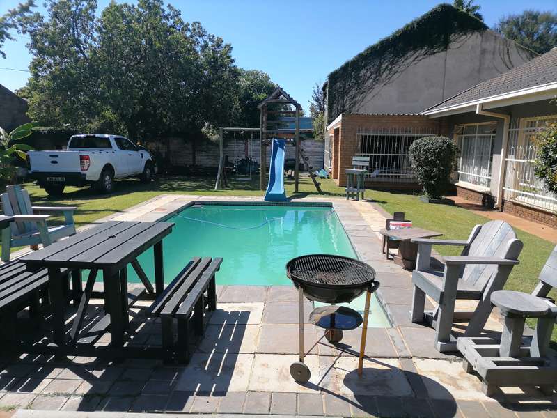 Price negotiable/ offers are welcome. Cozy family home in a great location This house offers three bedrooms with built in cupboards. a Study with tiled floors Large kitchen with separate scullery Sparkling Pool and lapa with built in braai Extended double Garage and a large workshop that can be used as a garage for 6 cars a Wendy house and 5 Cameras around the house Contact the agent to view
