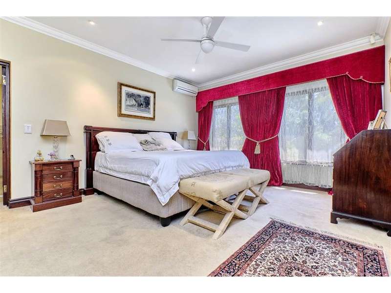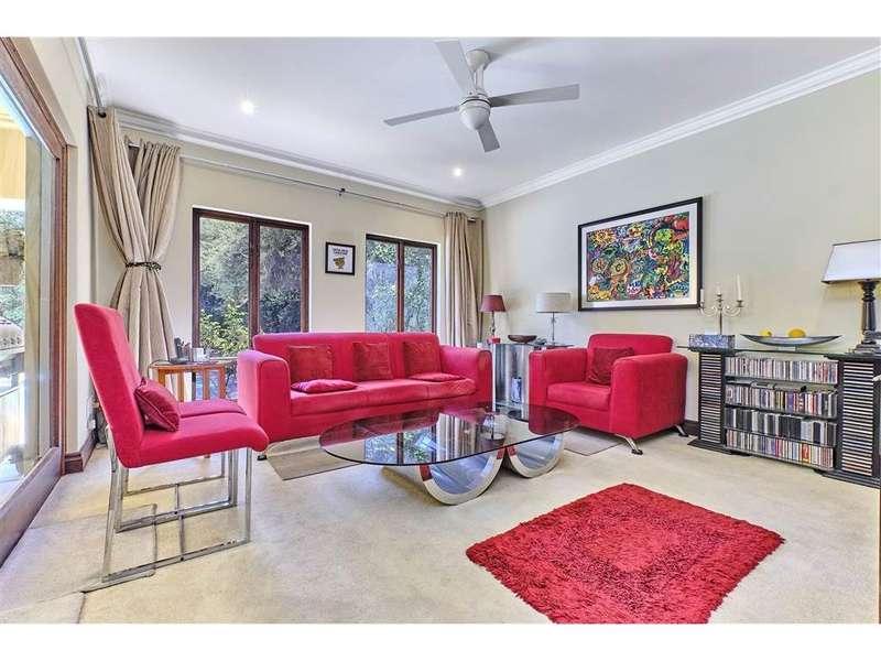 Set in the most beautiful established garden teeming with bird life, huge established trees, much loved plants and the feel of nature is this classical beauty! Downstairs are 2 lounges, which spill out to the patio area. This is the hub of the home where the family will spend many hours creating beautiful memories throughout the year ?Çô positioned to ensure the winter sunshine pours in and summer?ÇÖs shade brings cooling relief A stately dining room, with double doors that open to a beautiful water feature, lends itself to formal meals or casual get-togethers making every meal a special occasion, prepared in the gourmet kitchen with heaps of working space as well as an abundance of cupboard space and a separate scullery area ensuring the ?Ç£creative?Ç¥ space stays clean and organised. A 4th bedroom is located downstairs for the convenience and privacy of guests or grandparents. A guest cloakroom with a shower, basin and toilet services this area Upstairs the master suite is the size of a studio apartment with a private sitting room/study which leads out to a balcony and views over the treetops. This flows through to the master bedroom with a gigantic walk-in wardrobe and elegant bathroom with a jetted bath placed directly at the window to soak away life cares in a serene, nurturing environment. A further 2 very large double bedrooms, both with ensuite bathrooms, complete the upstairs area. This complex is in a security estate with only 16 very private erven. It is meticulously maintained and conveniently close to Sandton, Nicolway Shopping Centre, Bryanston Country Club and excellent schools and facilities. Call to set up a personal viewing.