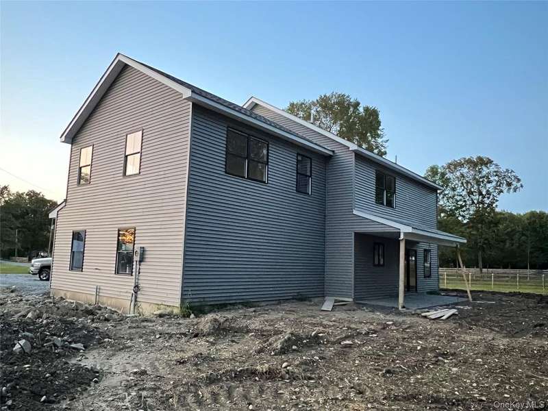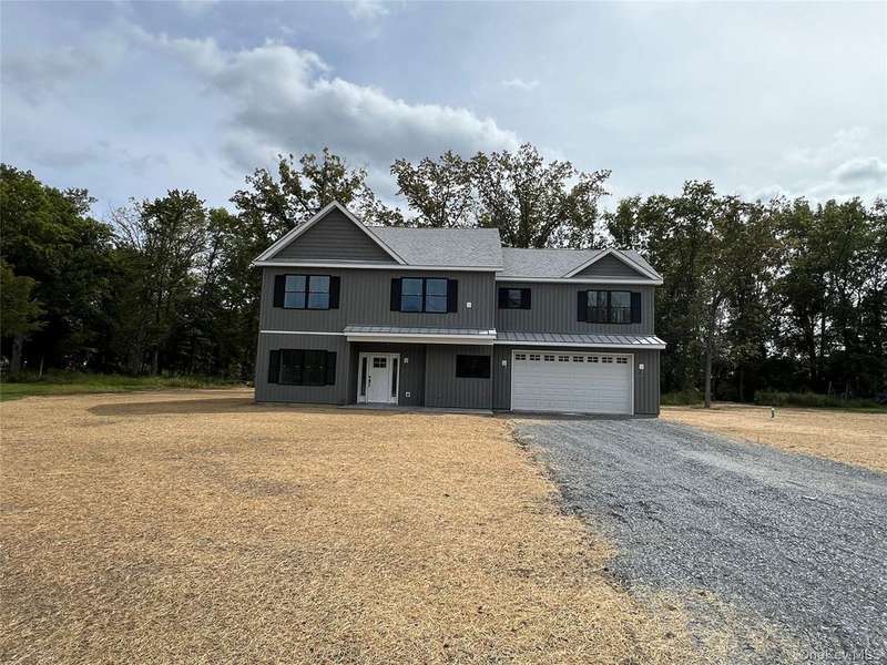Welcome to Bigert Drive, a beautifully crafted new construction colonial home offering 4 spacious bedrooms and 2.5 baths. Nestled in a desirable neighborhood in the Goshen Central School District, this home combines modern craftsmanship with timeless style, creating the perfect blend of comfort, quality, and functionality. Conveniently located near major highways for easy commute and proximity to shopping. Step inside to find an open and inviting layout, thoughtfully designed with today's lifestyle in mind. The living room centers around a natural gas fireplace offering warmth and charm throughout the seasons. The heart of the home is the custom kitchen, designed to match the architectural plans and tailored with cabinets, stone countertops, and high-quality faucets. Bathrooms also feature matching vanities with stone tops, stylish fixtures, and durable finishes. Every detail has been carefully selected to strike a balance between beauty and practicality. The primary suite is a luxurious retreat, complete with a spa-inspired bathroom showcasing a pedestal soaking tub, tile shower, and a double vanity. The 3 additional bedrooms are generously sized, offering plenty of storage and natural light. Interior highlights include colonial-style raised panel doors, 3" craftsman-style casings, 5" colonial-style base molding, oak railings with metal spindles, and neutral wall colors that provide a fresh, modern backdrop for your decor. This home is built for comfort year-round with 2-zone natural gas-fired heat and two-zone central air conditioning. A 200-amp electrical service supports all modern needs, with cable, phone outlets, smoke and carbon monoxide detectors, and a garage heat sensor for safety. The stamped concrete front porch with vinyl railings welcomes you home, while maintenance-free vinyl siding, architectural shingles, and standing seam metal accents on the porch areas ensure lasting protection and modern curb appeal. Energy-efficient double-hung windows with grilles between glass provide natural light and easy cleaning while framing beautiful views of the neighboring horse farm. Imagine sipping your morning coffee while watching the horses graze. The backyard is accessible via a sliding patio door, and outdoor features include a paved driveway, stamped concrete patios, a seeded yard, and frost-free hose bibs with exterior outlets for convenience. Municipal water service and a private septic system complete the package. This exceptional new construction home offers quality craftsmanship, modern amenities, and timeless style. With opportunities to personalize finishes, you can create the home of your dreams in a sought-after Hudson Valley location.