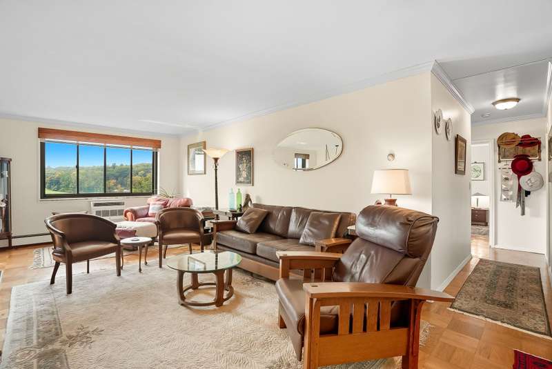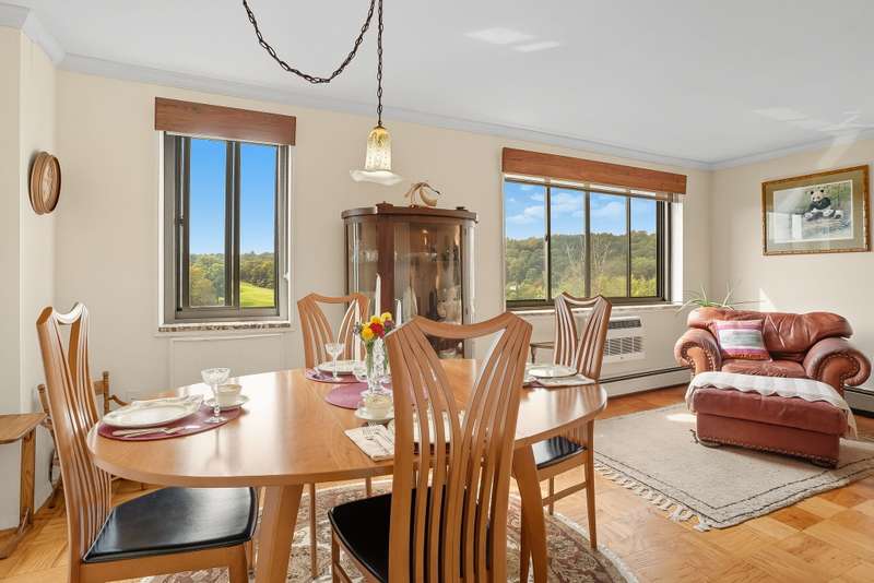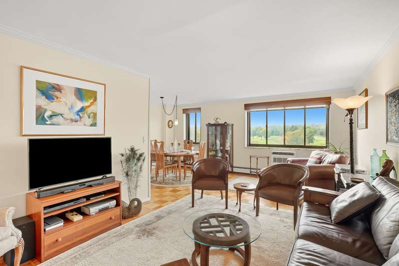 Enjoy open southern views of the Scarsdale Golf Course from this spacious two-bedroom, two-bath co-op with a guaranteed indoor parking space. Perfectly situated in the heart of Hartsdale, this sun-filled residence blends comfort, convenience, and style. The updated kitchen features granite counters and connects easily to the dining area, while the generous living room provides plenty of space for relaxing or entertaining. The primary bedroom comfortably fits a king-size bed and furnishings and includes a renovated en-suite bath. A second well-proportioned bedroom, refreshed hall bath, and ample closets throughout provide both comfort and storage. The building offers laundry and optional storage.Just moments from Hartsdales shops, dining, seasonal farmers market, and Metro North station (38 minutes to Grand Central), this co-op offers an unbeatable lifestyle.