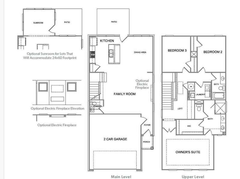Introducing the Carrington B plan, an exceptional new offering at The Enclave at Mill Creek by Cowart Residential, located in the serene and desirable surroundings of Mulberry, GA formerly Dacula. This 3-bedroom, 2.5-bath home offers a modern living lifestyle with an open concept design on the main level, ensuring a seamless flow throughout the kitchen, dining, and family area. The home is expertly crafted with generous room sizes that promise comfort and versatility, catering to both lively gatherings and peaceful moments alike. A standout feature is the sunroom an optional addition for select lots that extends the living space and enhances the home's connection to its natural setting. The upper level is just as impressive, featuring a luxurious owner's suite with a private bath, alongside two additional bedrooms, a full bath, and a practical laundry room positioned for ease of use. A cozy loft area completes this layout, offering a flexible space that would be perfect for a desk or a homework area. Situated within the prestigious Mill Creek High School District, The Enclave at Mill Creek not only offers a wonderful place to call home but also brings the advantage of a top-tier educational environment. This development is ideal for those seeking a balance of tranquility and convenience, with easy access to local amenities and community spaces.