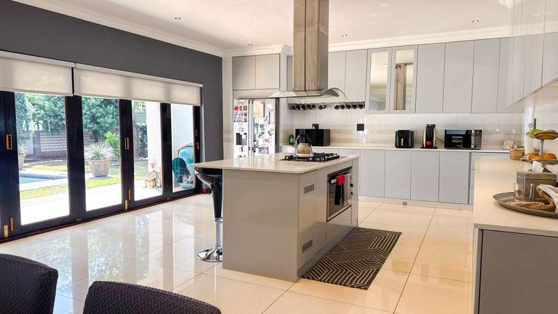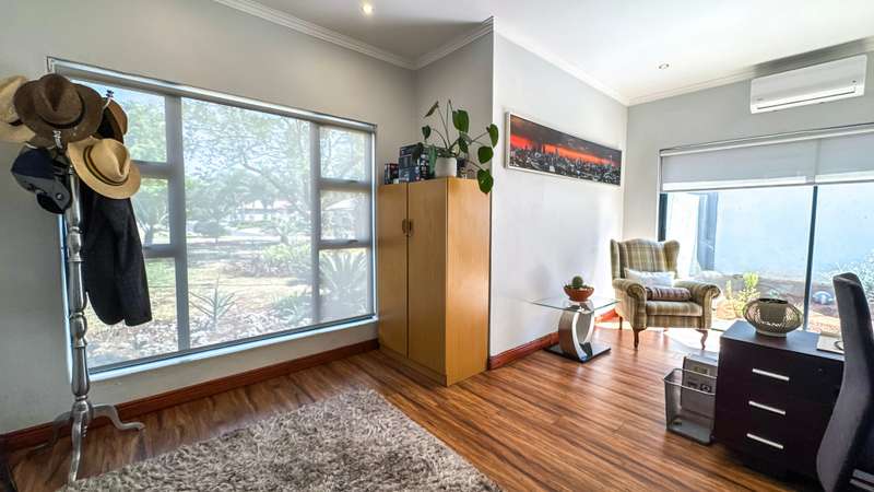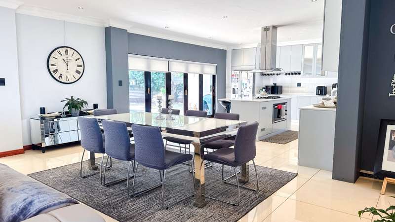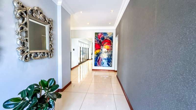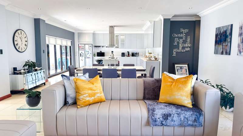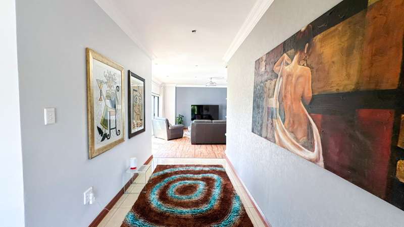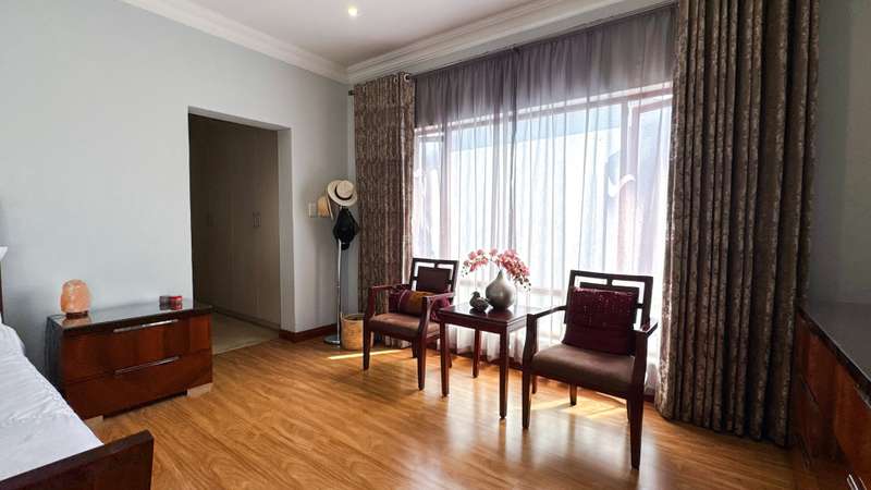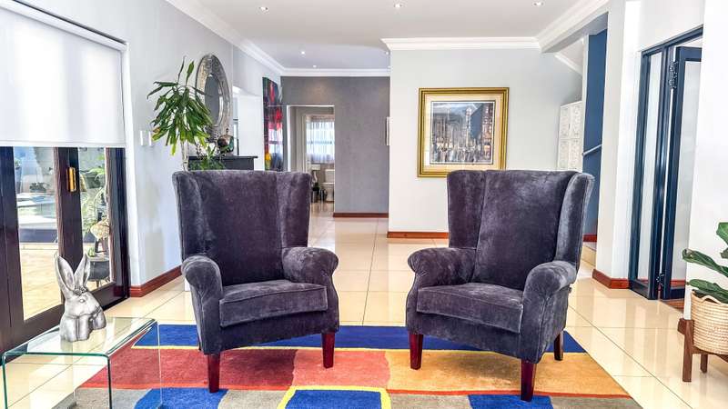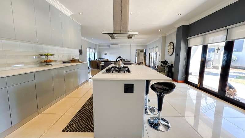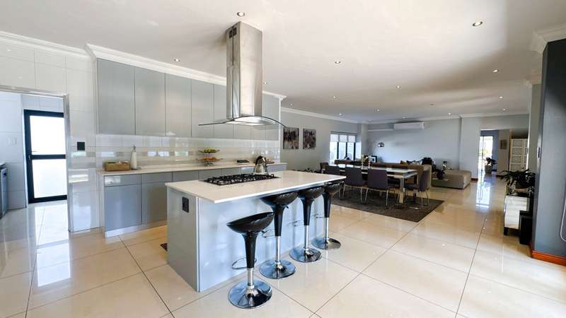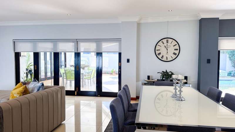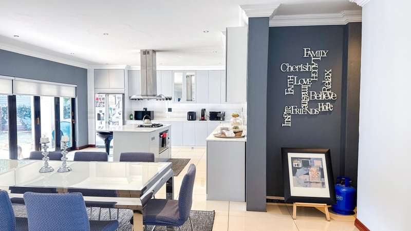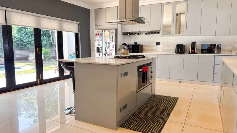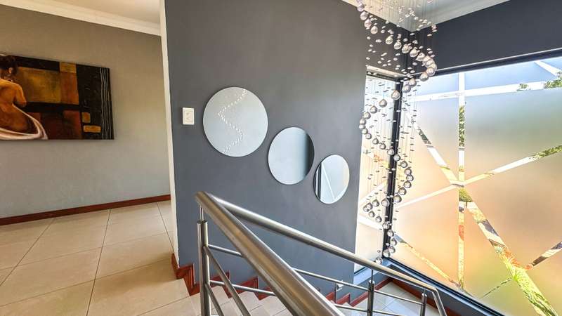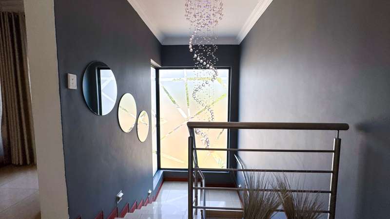 3/4 Bedroom, 3 Living Areas, PJ, SQ, 2 Garages and Pool - Home For Sale in Midstream Proper (Hutton Gate) Recently renovated family home is perfectly positioned within walking distance of Midstream College, with direct access from inside the estate to (Midstream Square Shopping Centre) Spar – an unbeatable convenience. This home welcomes you with its striking front exterior, featuring two garages plus extra parking space for additional vehicles, as well as ample guest parking. The large front door opens to a warm entrance hall, setting the tone for the elegant interior. To the left, a formal lounge and a home office or 4th bedroom, with direct access to a beautiful garden. The ground floor further includes a stylish guest toilet, and a spacious living room and a dining area leading into the heart of the home – the kitchen. The kitchen is both stylish and functional, fitted with electric ovens, a gas stove, a breakfast nook, walk-in pantry, and a separate scullery that flows to the courtyard. Outside is an en-suite very spacious staff room ensures convenience and comfort for live-in help. The living/TV room is spacious that opens seamlessly to the backyard and pool, creating an effortless indoor-outdoor flow. Step outside to a covered entertainment patio overlooking the sparkling swimming pool and an extraordinary, well-maintained garden – the perfect setting for family gatherings and summer evenings with friends. Upstairs you'll find two bedrooms plus a master bedroom with en-suite each with sliding doors opening to a balcony. All three bedrooms open up to a balcony with artificial grass making it easy for maintenance. The Pajama Lounge with the study nook next to it, while the showpiece large main bedroom boasts a walk-in closet, luxurious bathroom, and its own intimate balcony retreat. Key features include: Back Inverter with Solar Panels 3 Bedrooms, 4th bedroom downstairs currently used as an office and its huge opening to the garden. Large Pajama Lounge with a study nook Storage under the stairs Main with en-suite and a walk in closet 2 additional Bedrooms 2 Bathrooms, one with shower, another with Bath Tub 2 Spacious living areas, one with a cozy fireplace Open Plan Large kitchen with pantry, scullery, gas stove, and electric oven Open patio overlooking the sparkling pool Extraordinary, well-maintained garden Ample parking with double garage plus space for extra parking Large Staff quarters with separate Toilet and Shower Irrigation Landscaped garden.