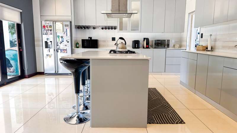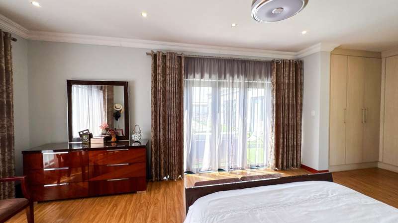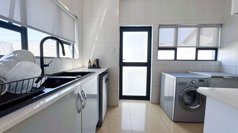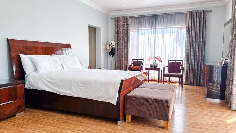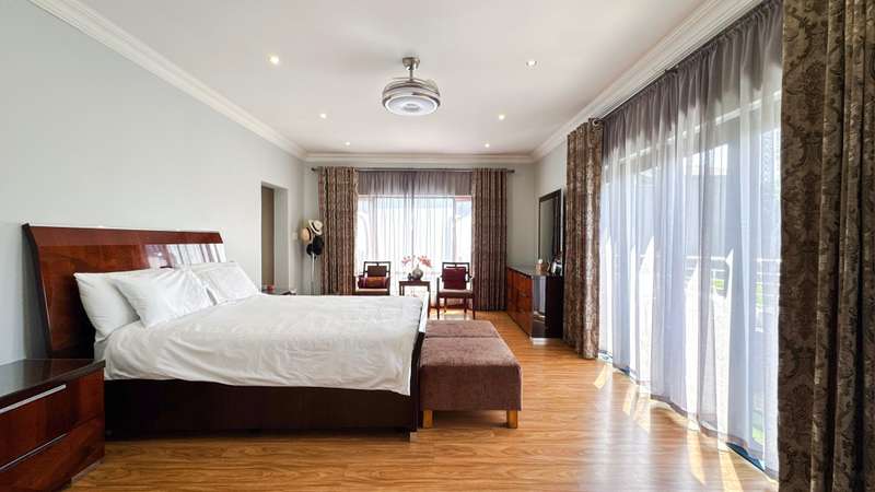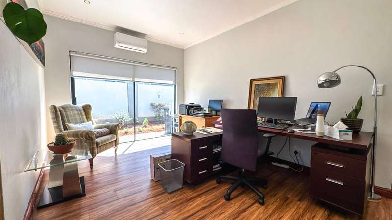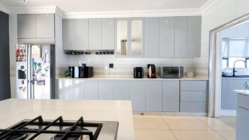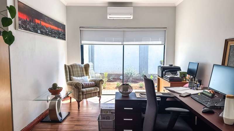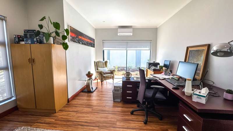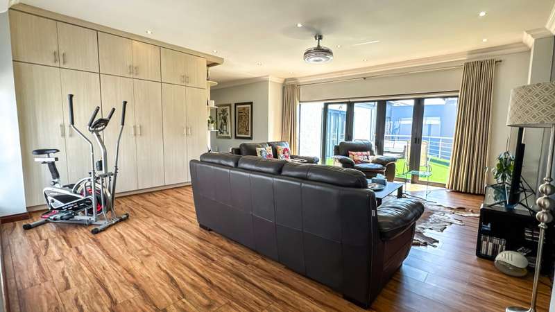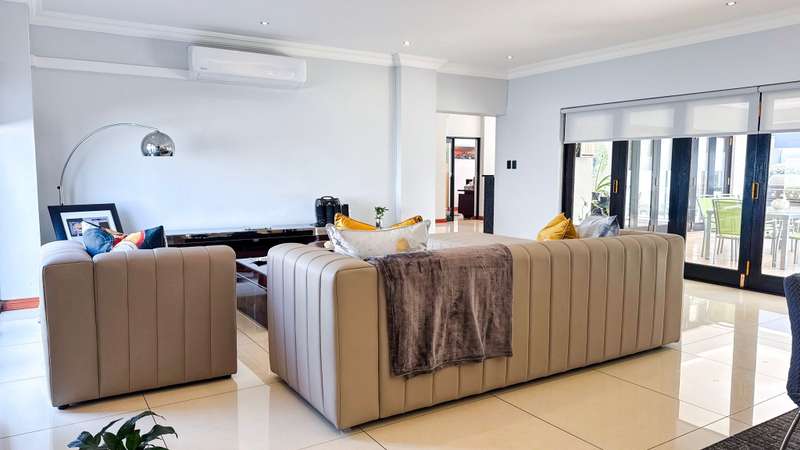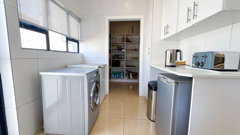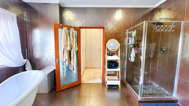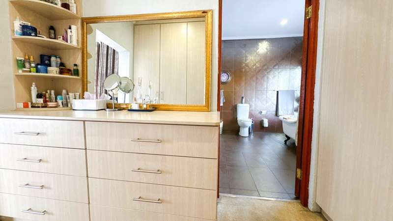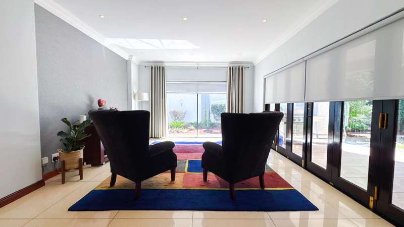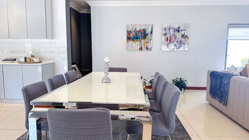 3/4 Bedroom, 3 Living Areas, PJ, SQ, 2 Garages and Pool - Home For Sale in Midstream Proper (Hutton Gate) Recently renovated family home is perfectly positioned within walking distance of Midstream College, with direct access from inside the estate to (Midstream Square Shopping Centre) Spar – an unbeatable convenience. This home welcomes you with its striking front exterior, featuring two garages plus extra parking space for additional vehicles, as well as ample guest parking. The large front door opens to a warm entrance hall, setting the tone for the elegant interior. To the left, a formal lounge and a home office or 4th bedroom, with direct access to a beautiful garden. The ground floor further includes a stylish guest toilet, and a spacious living room and a dining area leading into the heart of the home – the kitchen. The kitchen is both stylish and functional, fitted with electric ovens, a gas stove, a breakfast nook, walk-in pantry, and a separate scullery that flows to the courtyard. Outside is an en-suite very spacious staff room ensures convenience and comfort for live-in help. The living/TV room is spacious that opens seamlessly to the backyard and pool, creating an effortless indoor-outdoor flow. Step outside to a covered entertainment patio overlooking the sparkling swimming pool and an extraordinary, well-maintained garden – the perfect setting for family gatherings and summer evenings with friends. Upstairs you'll find two bedrooms plus a master bedroom with en-suite each with sliding doors opening to a balcony. All three bedrooms open up to a balcony with artificial grass making it easy for maintenance. The Pajama Lounge with the study nook next to it, while the showpiece large main bedroom boasts a walk-in closet, luxurious bathroom, and its own intimate balcony retreat. Key features include: Back Inverter with Solar Panels 3 Bedrooms, 4th bedroom downstairs currently used as an office and its huge opening to the garden. Large Pajama Lounge with a study nook Storage under the stairs Main with en-suite and a walk in closet 2 additional Bedrooms 2 Bathrooms, one with shower, another with Bath Tub 2 Spacious living areas, one with a cozy fireplace Open Plan Large kitchen with pantry, scullery, gas stove, and electric oven Open patio overlooking the sparkling pool Extraordinary, well-maintained garden Ample parking with double garage plus space for extra parking Large Staff quarters with separate Toilet and Shower Irrigation Landscaped garden.
