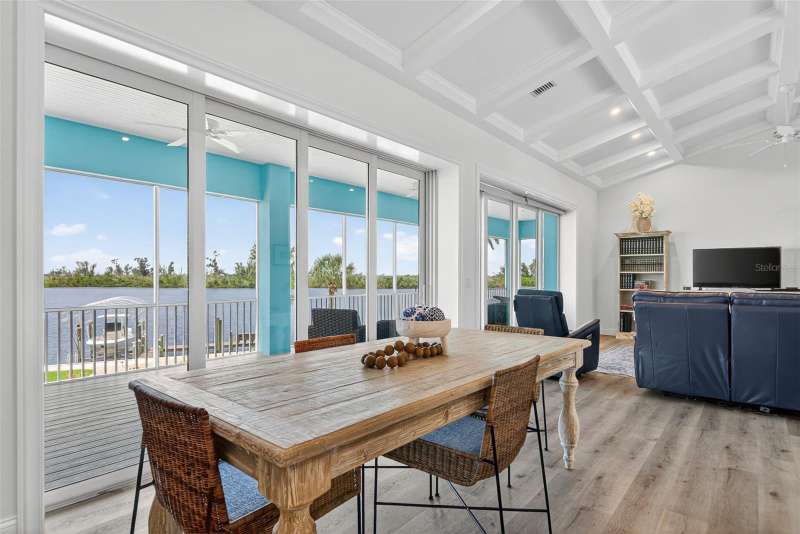 Built in 2020, this superbly crafted, luxury waterfront residence is perfectly positioned on 126 feet of prime Intracoastal Waterway frontage. Set on about .6 acres of impeccably landscaped grounds in the quiet Vanderbilt developed neighborhood of Cape Haze, with streets lined with towering banyan trees, the property enjoys a secluded old Florida setting. The residence offers the best of both worlds, with large vessel dockage at your back door and absolutely spectacular bay views, stretching to the Boca Grande bridge, Little Gasparilla Island and beyond. The nearly new home was built by an elite local builder, Jeb Bergeron Custom Homes. Designed and constructed to the highest coastal construction standards, with concrete tapered pilings, poured concrete beams, concrete block, thoroughly elevated, high-impact resistant windows and sliders, metal roofing, and a whole house generator provides lasting quality and more peace of mind. Inside the 4,241 total square foot home there's 3 bedrooms and 3.5 baths, each with a private en-suite, a grand open and elegant layout with light filled spaces, tall 11-foot+ vaulted beamed ceilings, that fully opens up and savors the mesmerizing nautical views. The chef's kitchen combines luxury and function with custom cabinetry, stone counter tops, a Wolf gas range, Sub-Zero refrigerator, and a beautifully crafted island. Other custom features include crown molding, case windows, solid core doors, beautifully tiled bathrooms, tankless gas water heater, premium plumbing and lighting fixtures. Outdoor living is equally impressive, with an immense screened second floor porch and ground level patio that run the entire length of the home. A stunning swimming pool and spa, paver patio and walkways, a large outdoor kitchen and bar, complete with a built-in gas grill, perfect for waterfront lounging and entertaining. An absolute boater's and fisherman's dream with world-class fishing waters and legendary boat destinations at your fingertips. Just a few steps to step onto your boat and within minutes be fishing for tarpon, back country or be in the Gulf headed for an offshore catch. Or take the guests on relaxing day trip adventures to an endless number of destinations including Boca Grande, Cabbage Key, Useppa, Captiva, Bokeelia, and Sanibel. The Cape Haze Property Owner's Association private dock and beach along with the Don Pedro Island State Park are just across the Waterway where gorgeous uninhabited beaches await.