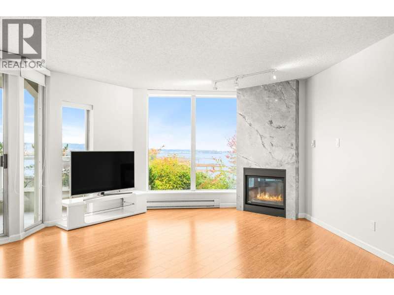 Stunning Fraser River & Mountain views from this beautifully renovated highly desirable '03' End Unit 2 bed 2 bath 1137 sf unit at Palace Quay! Fantastic open concept floorplan features solid engineered bamboo hardwood flooring, quartz counters, custom cabinetry, stainless steel appliances, 2 updated bathrooms. Large living/dining rooms with floor to ceiling windows showing off the beautiful view & an updated gas fireplace with custom marble surround. Good sized bedrooms incl spacious primary with walk through closets & 4 pce ensuite. Great location just a short walk to Glenbrook Ravine Park, Queens Park, Sapperton shopping, groceries, restaurants, cafes & skytrain. Building amenities: indoor pool/hot tub, gym. 1 parking & 1 storage! OPEN HOUSE: Saturday Nov 1st 2:30-4pm! (id:58403)