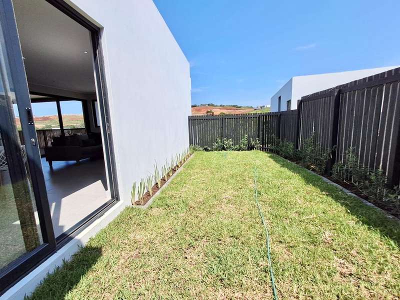 Discover the epitome of luxury living with this brand new, freehold home located within the prestigious Zululami Coastal Luxury Estate. This north-facing, double-story home is thoughtfully designed, featuring four generously sized bedrooms and three stylish bathrooms, including a super spacious main en-suite. The bedrooms are spacious, all include air conditioning and have loads of natural light. The fourth bedroom is located downstairs and is completely private with its own entrance making it ideal to use as an office or self-contained flatlet. The ultra sleek kitchen comes complete with modern lighting, gas fittings, and a separate scullery. The living and dining areas lead out onto a beautifully decked undercover patio perfect for entertaining. Added extras of this great home include a double lock up garage and beautifully landscaped garden. Zululami is within walking distance of some of the most prestigious beaches in KwaZulu-Natal, also offering walking trails, sports grounds and is the perfect location for outdoor enthusiasts and those looking to connect with nature. Call now to arrange a viewing!