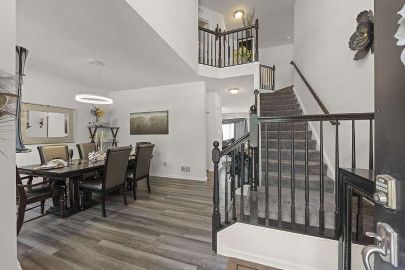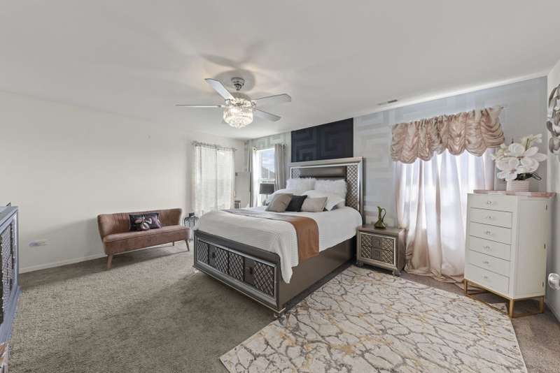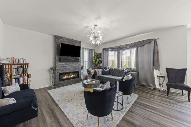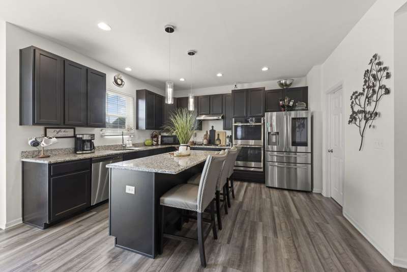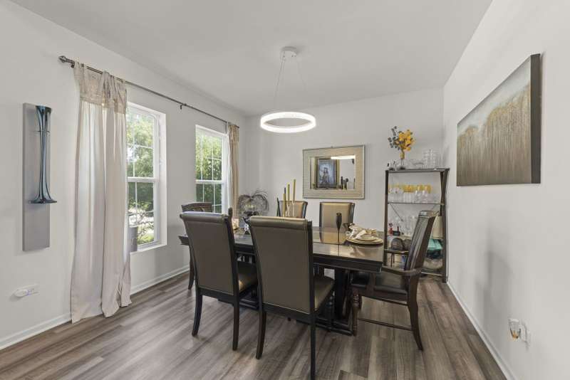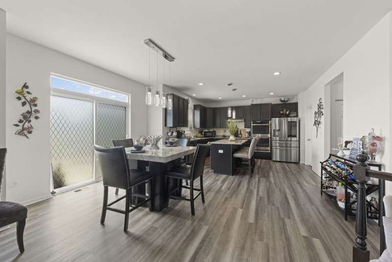 Stylish and sophisticated, this Dunbar model in Westminster Gardens is better than new! Built by MI Homes just 3 years ago, this 2,681 sq ft home has been elevated with striking designer light fixtures that add sparkle and personality to nearly every room. The stone and brick exterior opens to a bright, open-concept main level with luxury vinyl flooring throughout. A flex room at the front of the home offers versatility as a dining room, office, or playroom. The upgraded kitchen features rich espresso cabinetry, stainless steel appliances with double oven, island seating with pendant lighting, can lights, and a walk-in pantry, all flowing into the dining area and family room. Gather around the stacked stone fireplace with an electric insert that lets you change the flame color to match your mood. Upstairs you'll find 3 bedrooms plus a spacious loft that could easily serve as a 4th bedroom. The primary suite offers a large walk-in closet and a spa-like bath with soaking tub, separate tiled shower with glass door, dual sinks, private water closet, and stylish updated lighting. Convenient 2nd-floor laundry. Enjoy the outdoors with a huge stone patio and extra-deep backyard, with no neighbors across the street-just open space and mature trees. Additional features include solar panels for major energy savings, an unfinished basement, concrete driveway, and a sidewalk path leading to the backyard. Westminster Gardens offers the perfect blend of established community charm and modern convenience, with easy access to I-55, I-80, Route 59, shopping, dining, and Minooka schools.