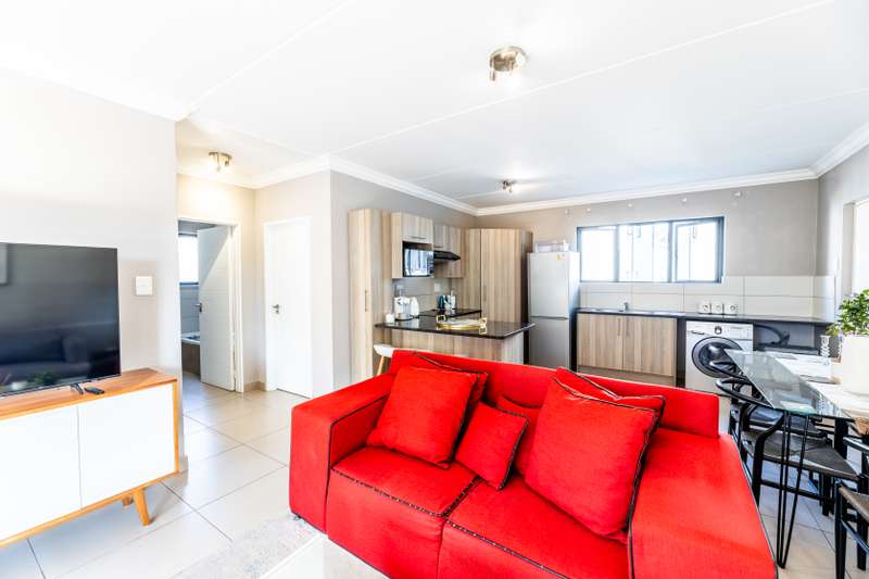 Stylish 2-Bedroom Apartment in Prime Location! Discover your new home in this beautifully designed 2-bedroom apartment, perfect for modern living and convenience. Features: Main Bedroom: En-suite for ultimate privacy and comfort Bathrooms: 1, stylishly appointed for your convenience Living Space: Spacious lounge area ideal for relaxation and entertainment Kitchen: Modern, with contemporary finishes, with space for 2 appliances. Parking: 2 secure parking bays, one covered and one uncovered. Location Benefits: Nestled in a prime area surrounded by upscale shopping centers Close proximity to popular schools Only a 12-minute drive from Lanseria Airport Easy access to office parks Convenient public transport links Enjoy the perfect blend of comfort, style, and accessibility in this exceptional apartment. Contact us today to schedule a viewing and make this your new home!