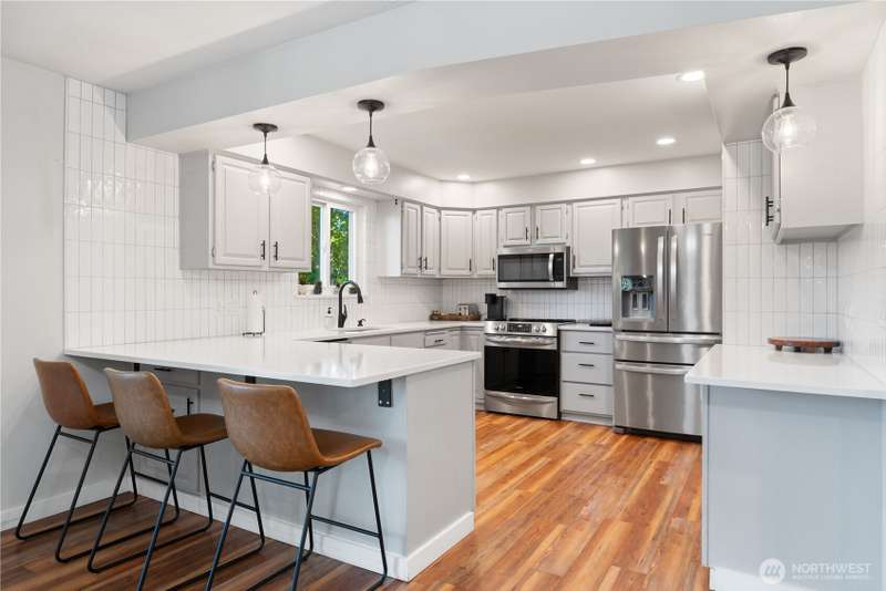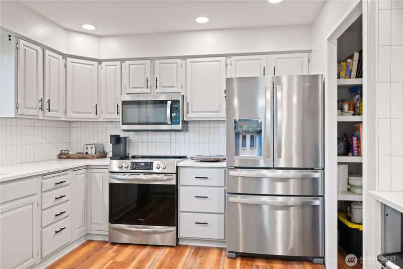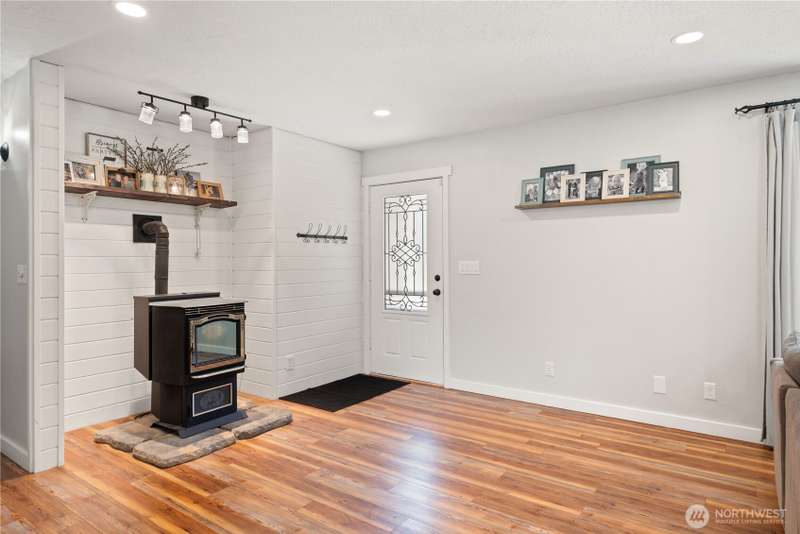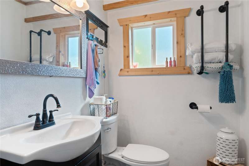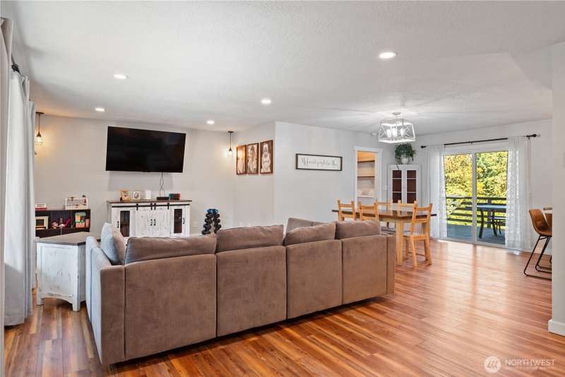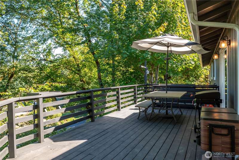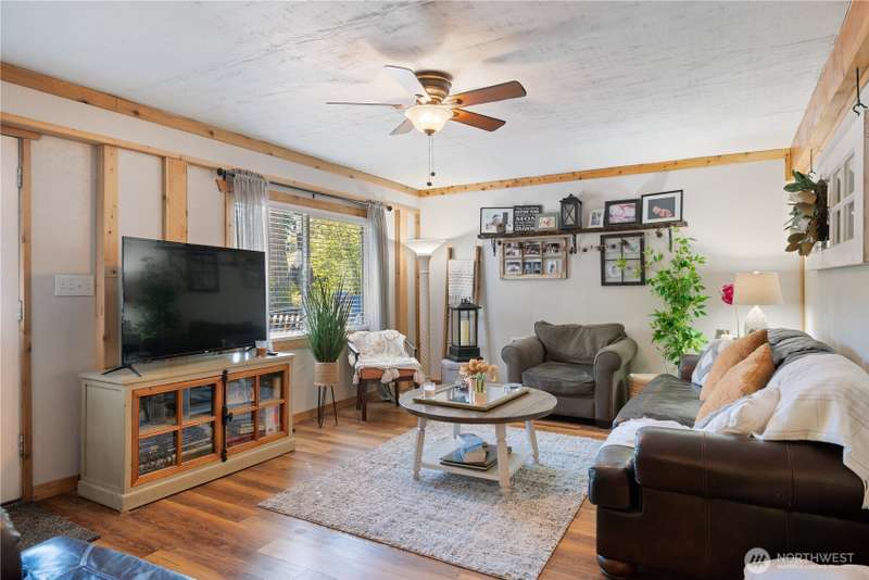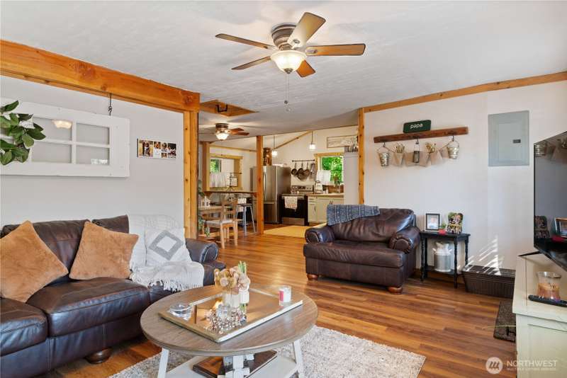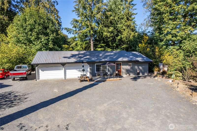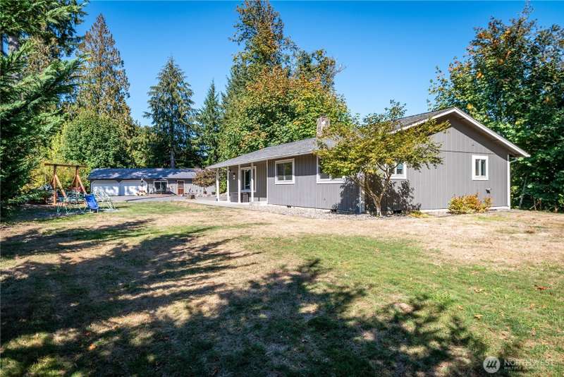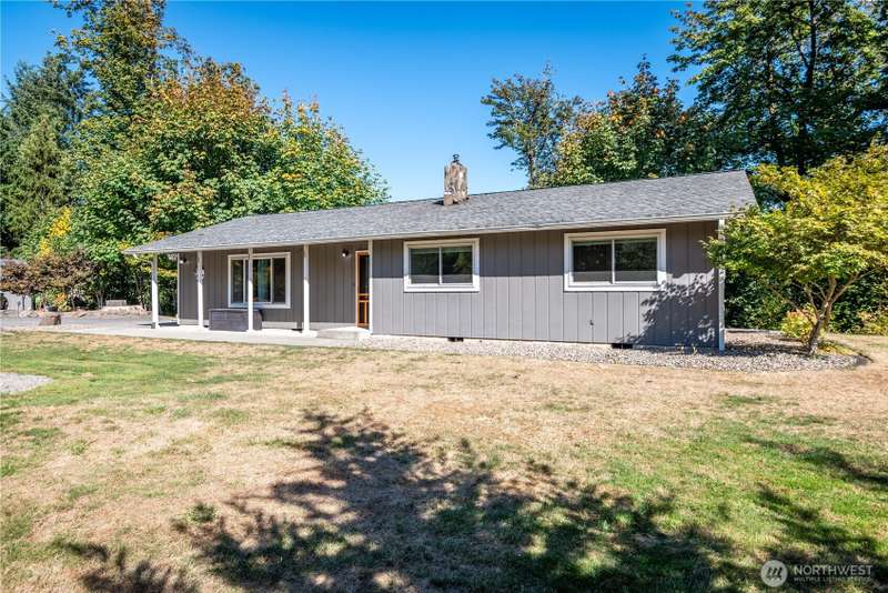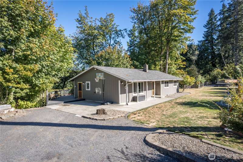 Beautifully updated one level home nestled on 1.77 private acres in Castle Rock! Pristine home featuring 3 bdrms, 1.5 bthrm, Great Room living w/new LVP flooring, updated spacious kitchen with quartz countertops, eating bar & SS appliances, large living rm w/pellet stove, dining room w/slider to large deck for entertaining, primary bdrm w/door to bathroom, half bath off laundry rm, new Andersen windows throughout & new ductless heat pump just installed. The cozy 936 SF ADU features 1 bdrm, 1 bthrm, living rm, dining rm, kitchen w/eating bar & laundry rm. The manicured grounds offer seclusion, treed setting, ornamental trees & shrubs, entry gate, level front yard & garden space, playground area, RV parking & ample parking for all your toys!
