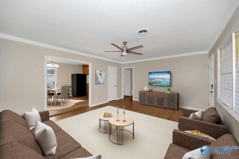 Beautifully updated 3 bedroom, 2 bath home featuring fresh paint throughout and a versatile flex space. Original hardwood floors add charm, while both bathrooms have been refreshed with new tile walls, floors, tubs, and toilets. The kitchen shines with new countertops, appliances, and a stylish new backsplash. All bedrooms include brand-new ceiling fans for added comfort. Enjoy plenty of parking plus a detached garage/workshop. Exterior upgrades include fresh paint with cedar columns, and new windows scheduled for delivery and installation in December 2025. Move-in ready with modern touches throughout.
