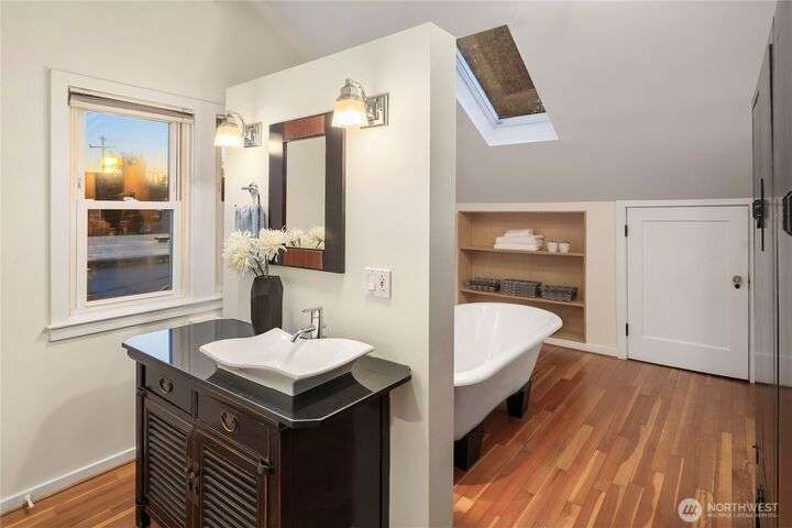 Welcome to this highly sought-after location, directly across from Green Lake, one of Seattle’s most beloved parks. This charming 1926 craftsman home features 4 bedrooms & 2.75 bathrooms. Enjoy breathtaking views of Green Lake Park, which include partial views of the lake! This fantastic home is ideally situated near the tennis courts & features a covered porch that leads into a bright living area. Upstairs, enjoy a light-filled primary suite with skylights. The spacious kitchen boasts a sunny breakfast nook & the expansive rec room is perfect for entertaining. Detached garage in the alley. This property is conveniently close to downtown, restaurants, PCC, light rail, I-5, Green Lake recreational trail & abundant neighborhood amenities!
