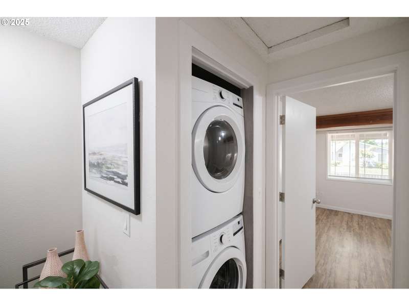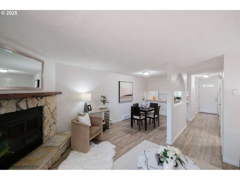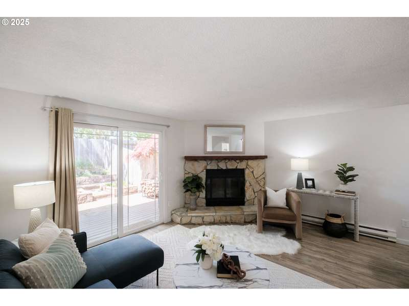 Move in Ready! Exterior refresh complete! Recent interior inspection list complete! Fall is here ...enjoy the last of the beautiful weather on your deck, then enjoy a cozy fire in your new home. FULLY FENCED BACKYARD for your kids, furkids, gardening, or just relaxing in the shade. Offset rising heating costs all winter with the comfort of your own wood burning fireplace. Easy care/low allergen LVP floors throughout. All appliances, including refrigerator and newer stackable washer/dryer. Two bedrooms, one full bathroom, storage, upstairs, half bath downstairs. 6x3 secure storage unit. Dedicated parking space. Superb location - quick access to dining, shopping, library, concert/movies/art in the park, farmers market, great parks (dog park, 2 splash parks, kid play equipment), I-5. Pool, clubhouse, workout & extra laundry facilities on site. Investors - no rental cap.