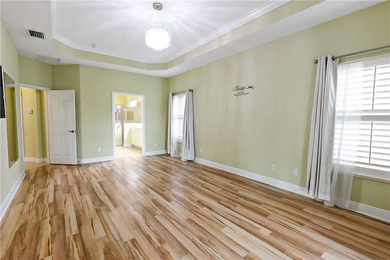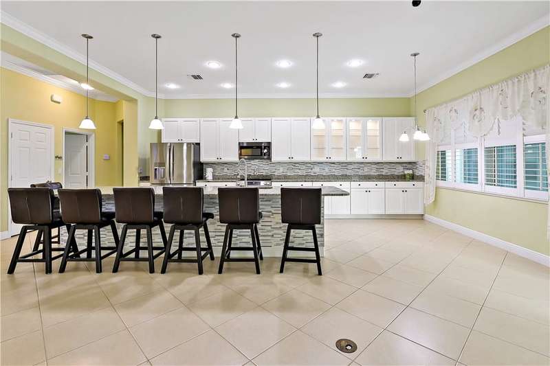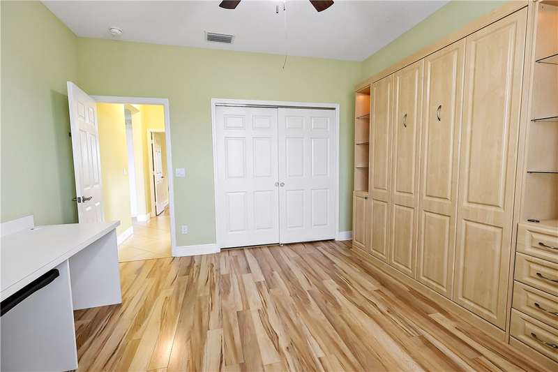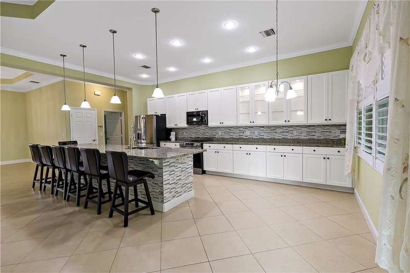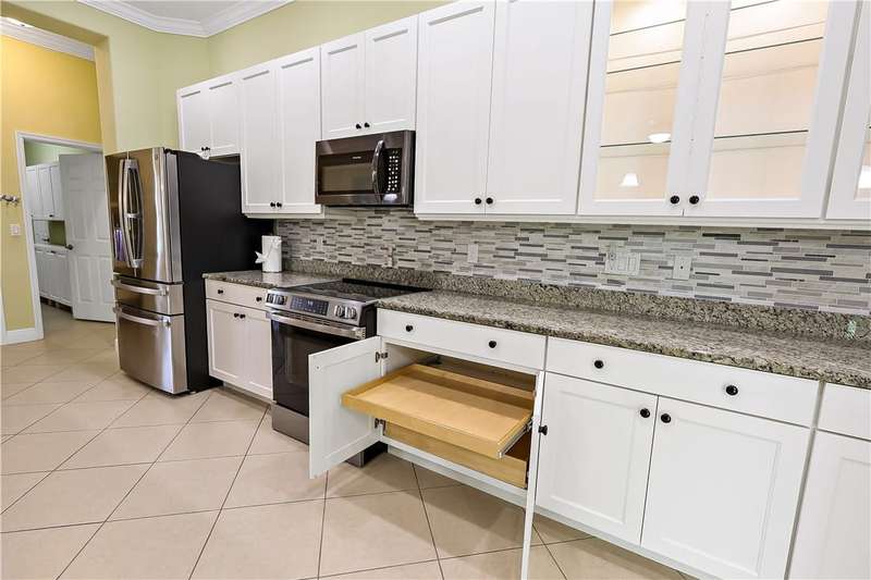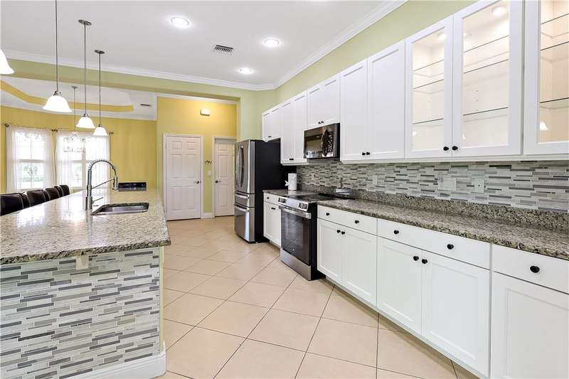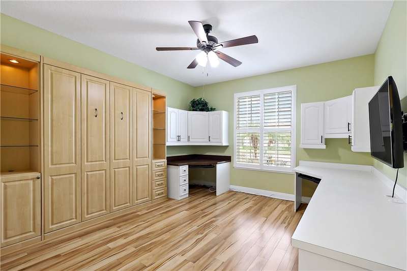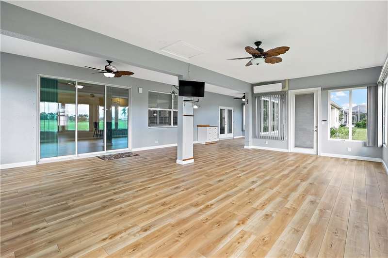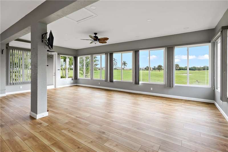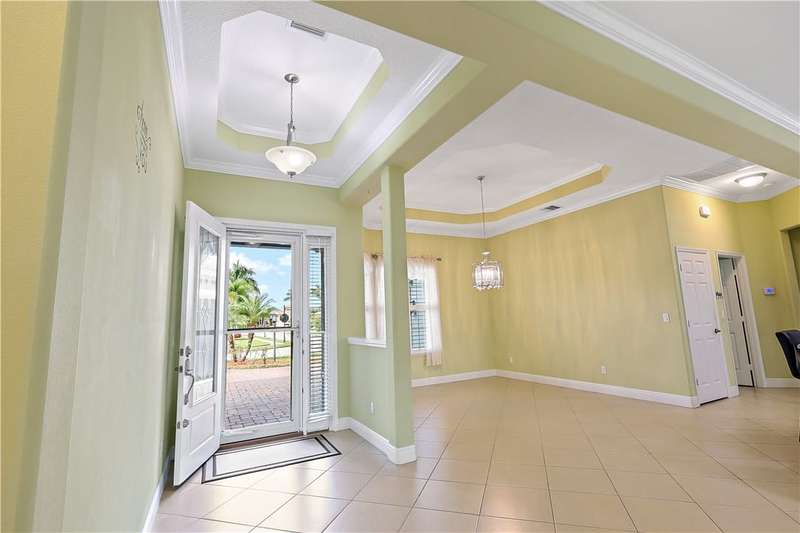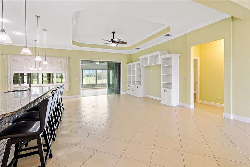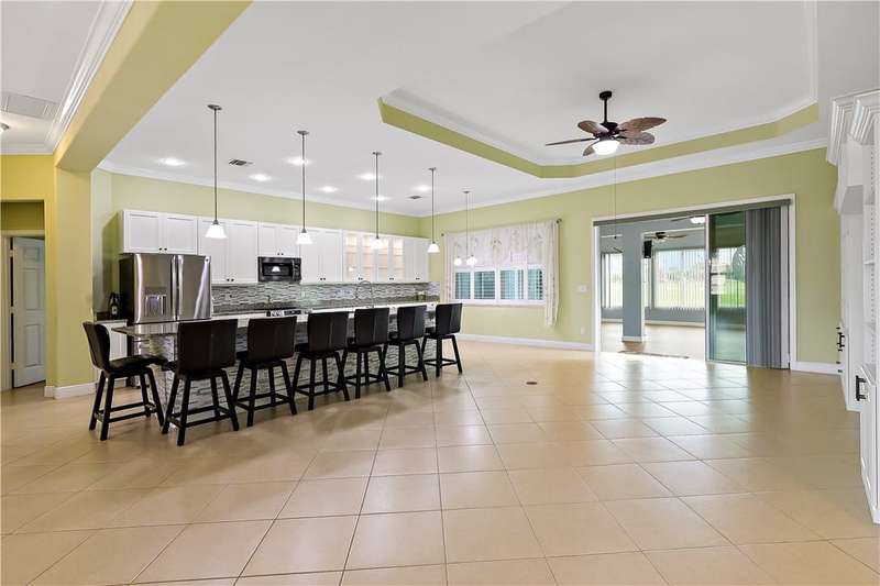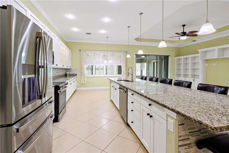 This 2016 residence blends elegance with comfort, thoughtful upgrades throughout, crown molding, tray ceilings, custom cabinetry, soft-close kitchen drawers and more, adding style and function to the heart of the home. The kitchen is fit for a feast, providing plenty of space for family and friends. Every detail has been considered, impact windows and roll-down shutters for peace of mind. The entire home is under air, including the garage and enclosed Florida rm, which feature mini-split AC systems. Get ready for year-round enjoyment overlooking lush golf course views! 2024 HVAC! RMSZAPPSJ2ER