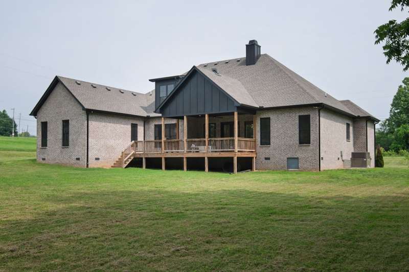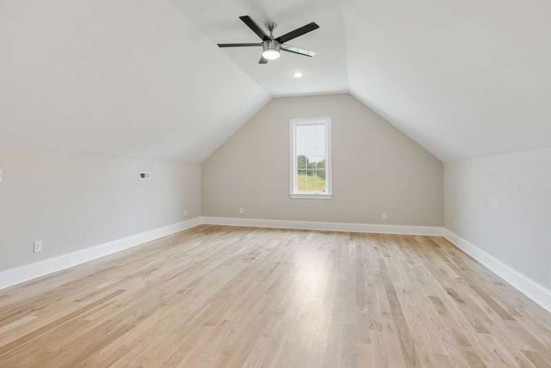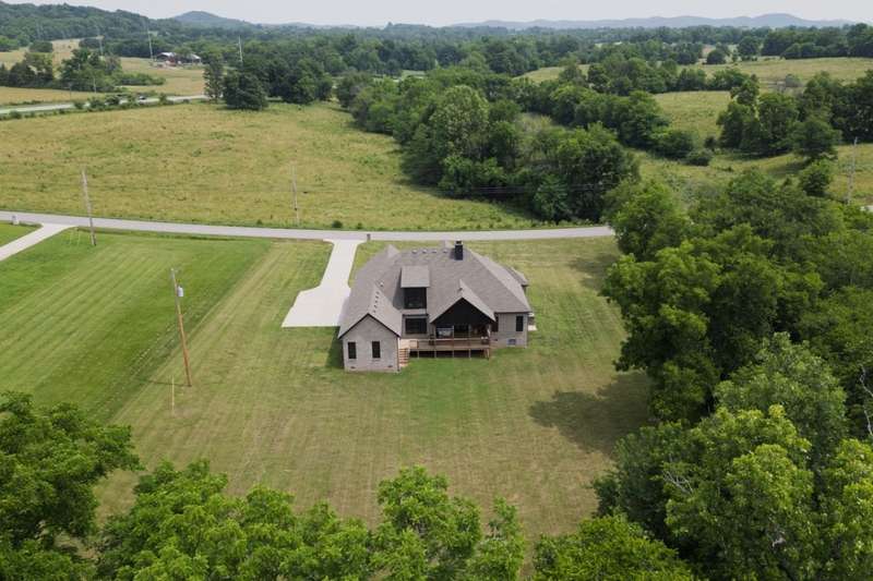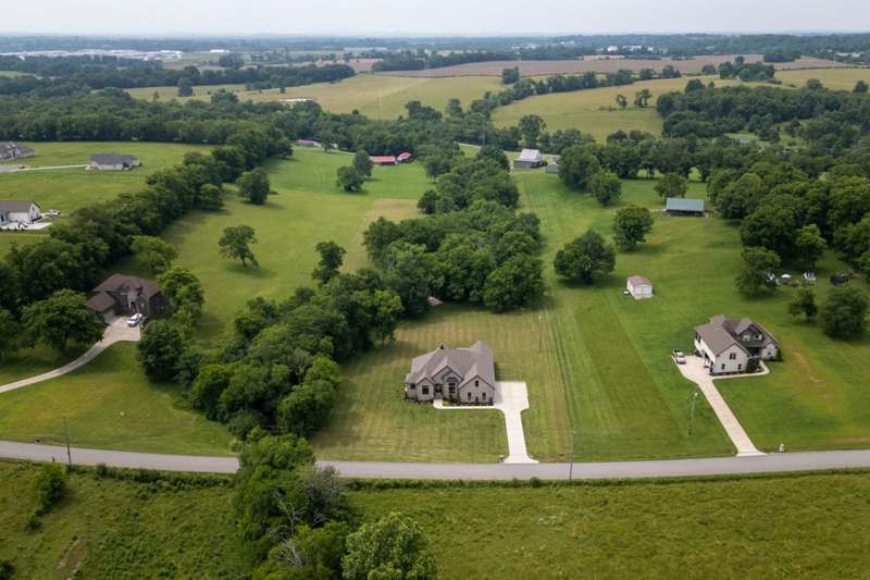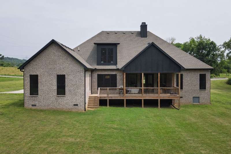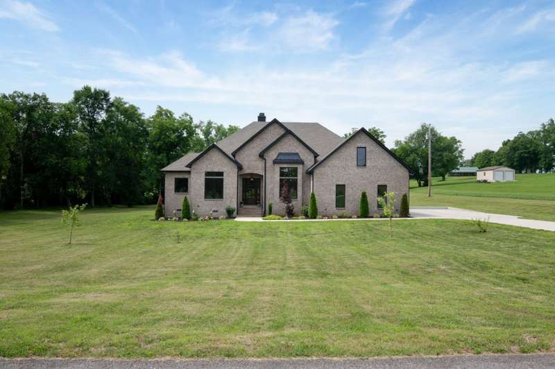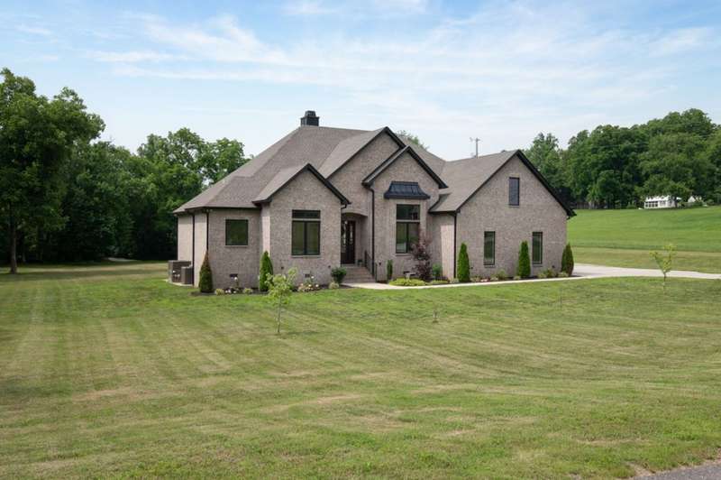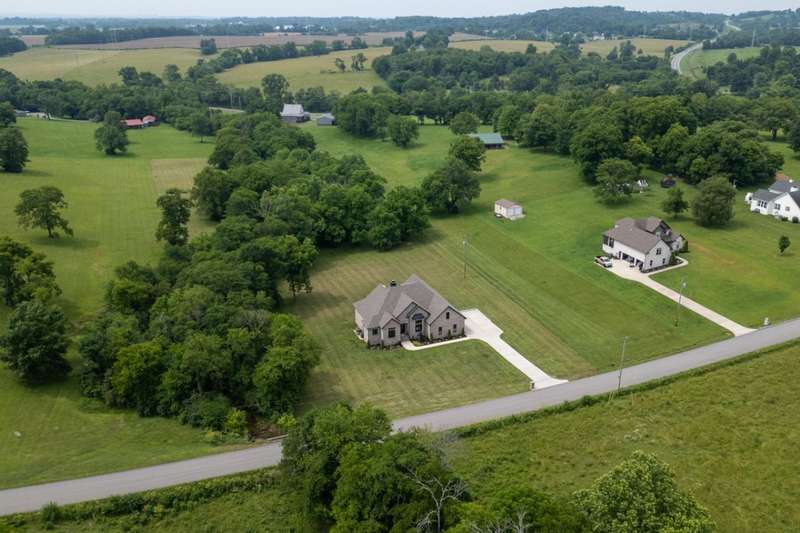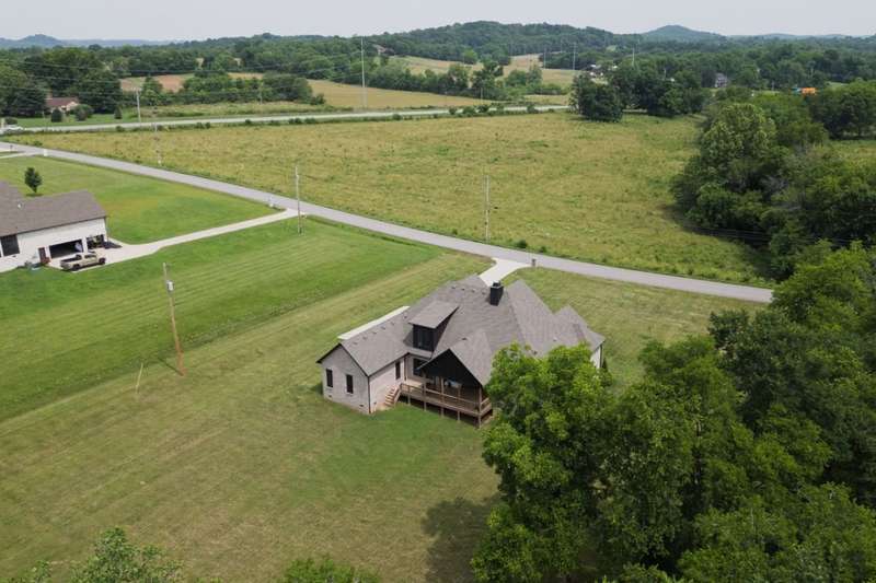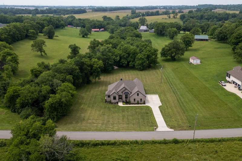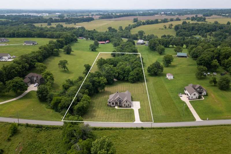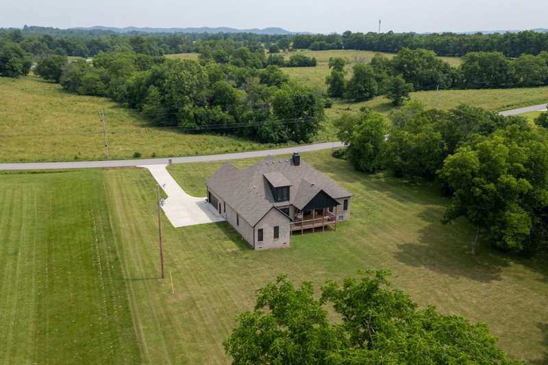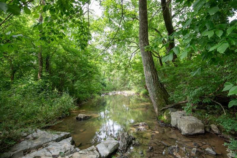 CUSTOM HOME on 5.1 ACRES, perfect for those seeking space, privacy, and a connection to nature. Featuring a HISTORIC STONE WALL and a CREEK RUNNING THE ENTIRE LENGTH, Ideal for Recreation, Relaxation, and added Seclusion. Inside, the Soaring 14' Ceilings and an open floor plan create an airy, inviting space. Custom Cabinetry and lightly stained hardwood floors flow throughout complementing the clean, modern aesthetics. A Wood Burning Fireplace, easy conversion to gas if desired, anchors the main living area. All bedrooms located on main level, along with a designated office. Upstairs find a large Bonus Room with Wet Bar and an additional bonus area could be for media room or hobby room.