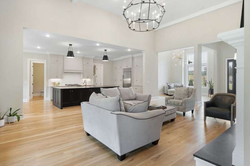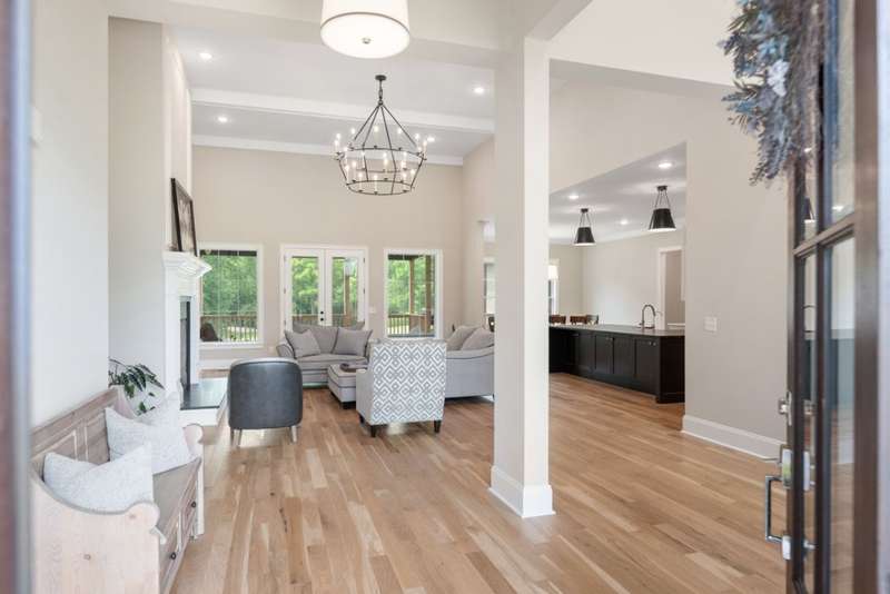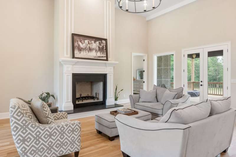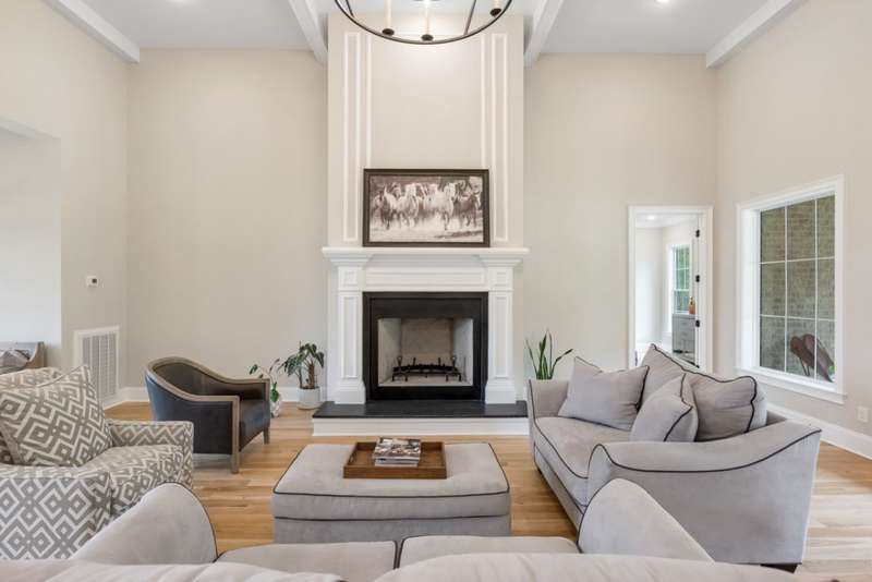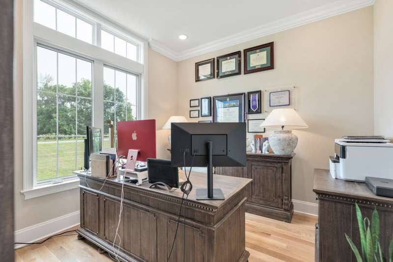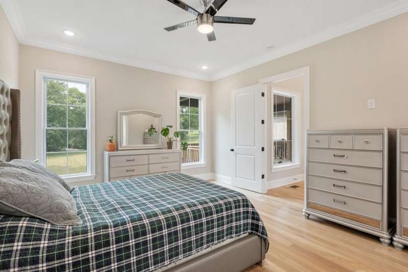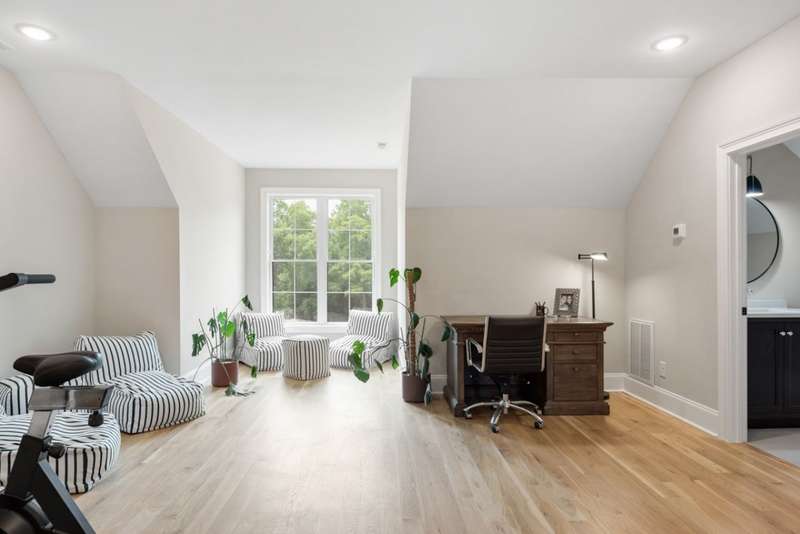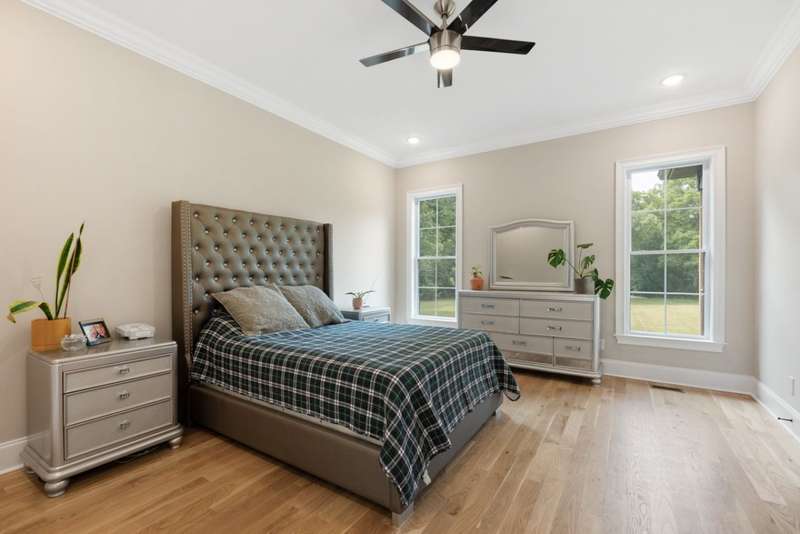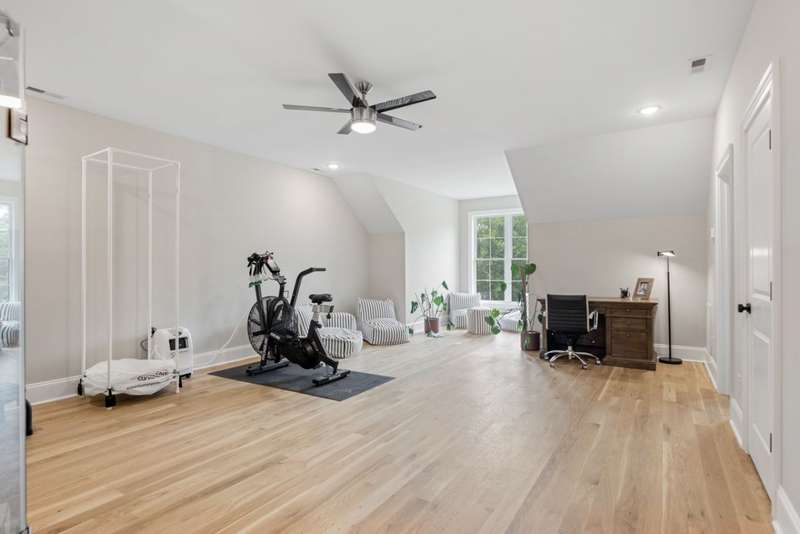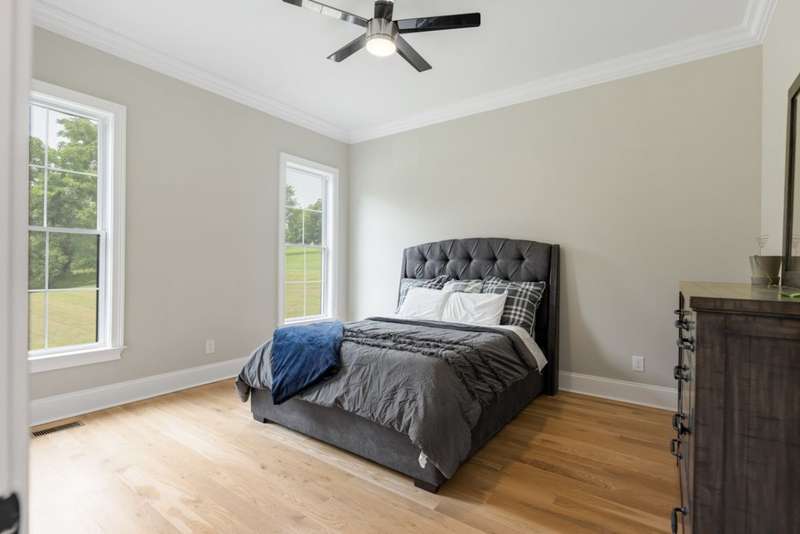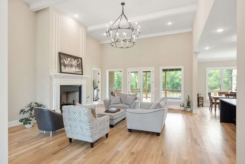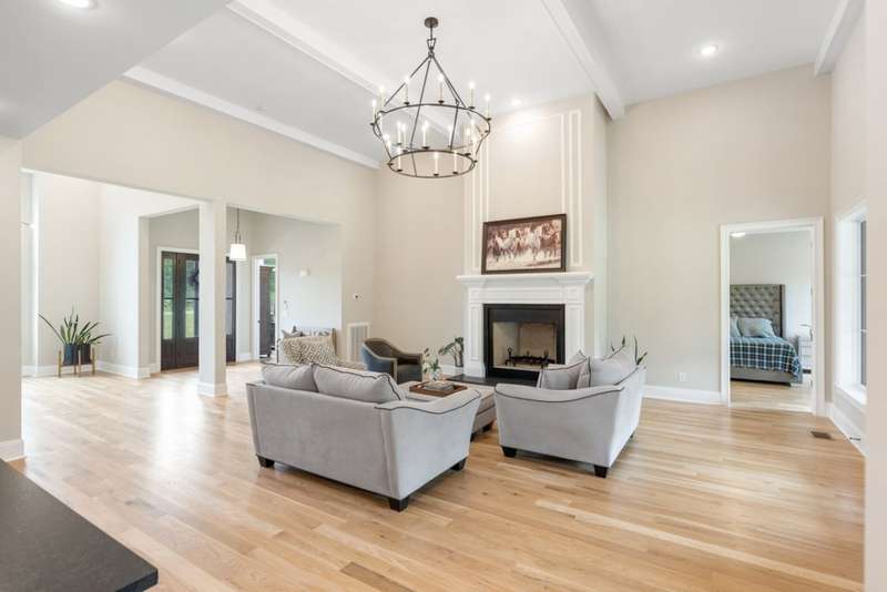CUSTOM HOME on 5.1 ACRES, perfect for those seeking space, privacy, and a connection to nature. Featuring a HISTORIC STONE WALL and a CREEK RUNNING THE ENTIRE LENGTH, Ideal for Recreation, Relaxation, and added Seclusion. Inside, the Soaring 14' Ceilings and an open floor plan create an airy, inviting space. Custom Cabinetry and lightly stained hardwood floors flow throughout complementing the clean, modern aesthetics. A Wood Burning Fireplace, easy conversion to gas if desired, anchors the main living area. All bedrooms located on main level, along with a designated office. Upstairs find a large Bonus Room with Wet Bar and an additional bonus area could be for media room or hobby room.