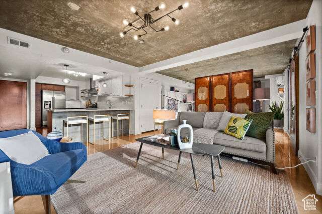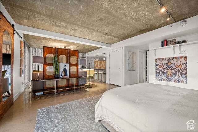 **The floor stain has been changed in a few photos to show a different style.** Vibrant loftstyle condo in the heart of downtown SLC-made for the movers, the shakers, and the latenight taco seekers. Welcome to a space that feels equal parts art gallery and urban playground. Polished aquaepoxy floors flow from the entry straight to floortoceiling glass doors framing skyline + Wasatch views-your nightly reminder that you live in the city, not just near it. The open kitchen is pure chef cred: sleek quartz counters, spacious peninsula with goldframed bar seating, stainless appliance suite, and statement globe pendants that double as moodlighting for pregame cocktails. Custom open shelving, modern flatpanel cabinetry, and a whisperquiet range hood keep the vibe minimalist yet dialedin. Slide into the living zone where concrete ceilings, bespoke birchforest wallpaper, and industrial pipe shelving create instant Instagram backdrops. Tucked beyond a reclaimedwood accent wall, the bedroom nook serves up cozy separation without killing the loft flow. Glass sliders open to a private balcony-perfect for sunrise coffee, sunset ros, or peoplewatching the Friday night buzz below. Secure entry, elevator access, and everything from craft breweries to TRAX stops are literally steps away. If your lifestyle is more bike to brunch than mow the lawn, this is your next address. Keys are ready-are you?
