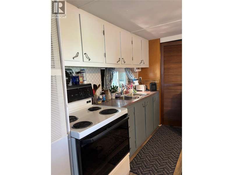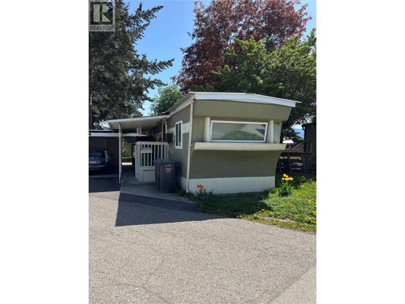 MOTIVATED SELLER! Welcome to Okanagan Villas 55+ MHP. This cozy, partially updated home would be a great fit for a single person or couple seeking a low-cost alternative for the summer months. Can be used year-round if desired and is a cost-conscious option! Most of the big-ticket items are DONE, new metal roof 2023, new HWT 2024, new wall-mounted AC 2024, Fridge 2019. The furnace is a unique find, installed in 2006 but never used so it is essentially new as well! The windows are all upgraded vinyl, laminate flooring and updated bathroom, all done for your convenience. There are two sheds for outdoor storage, one built into the carport and the second is a movable one against the unit. The small but functional yard has roses, tulips and rhubarb plus a water tap for your gardening needs. It just needs some love to make it your own oasis or garden for those that prefer to be more self-sufficient. Parking for two, one in the carport and an open space beside the carport with room for a pick-up if needed. Owner needs to sell ""As-Is"" and will include many furniture items to make this a turn-key investment. Price Includes: a lightly used twin bed, couch, sturdy oak table and 4 chairs, Danby portable washer unit (older but works faithfully), Dyson vacuum, kitchenware, yard tools, small pressure washer, etc. This has all the essentials and could be the perfect move-in ready property! Call for a viewing today, 24hours notice please. (id:58403)