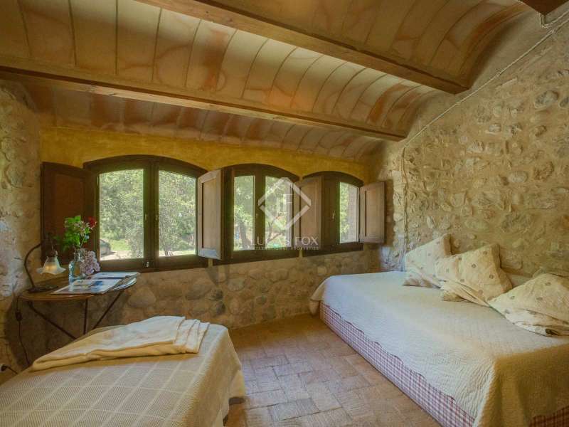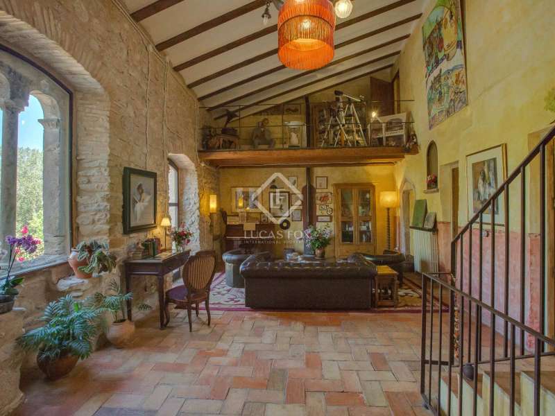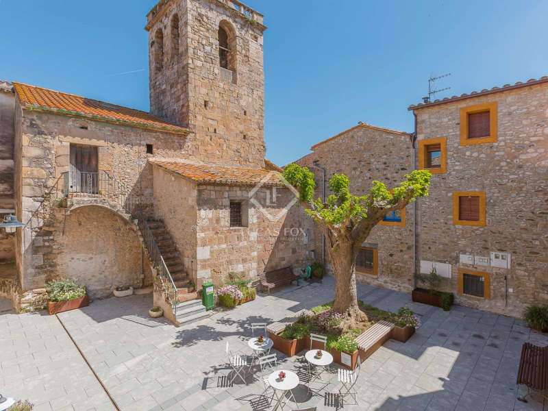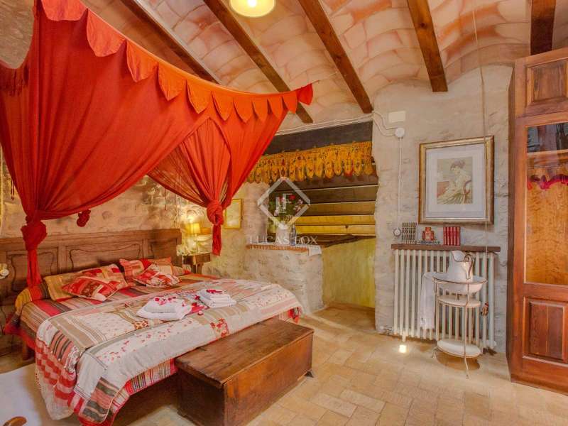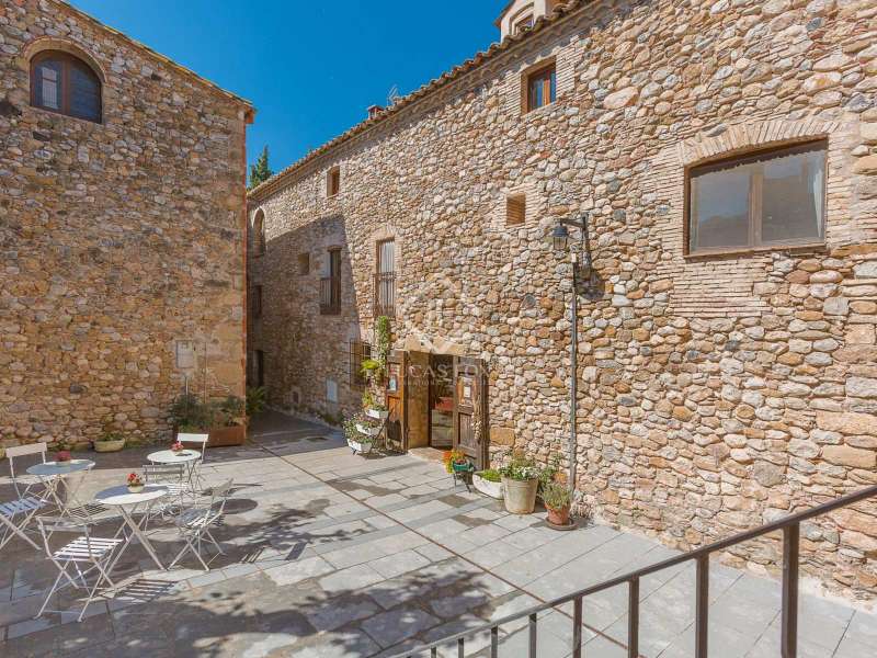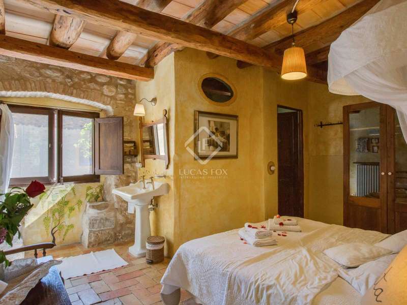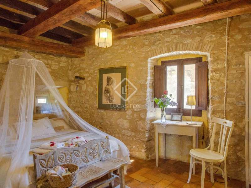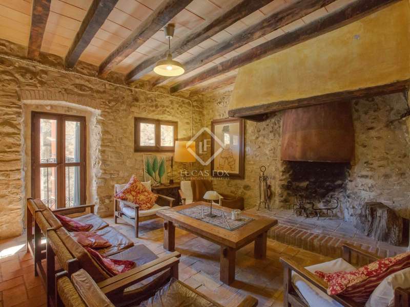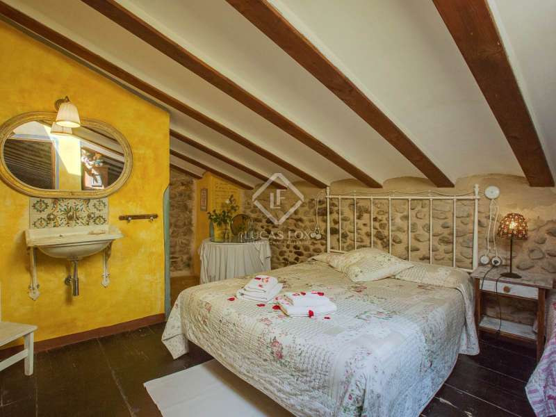 Lucas Fox presents this beautiful country house dating back to 1238 located in the church square, surrounded by other historic properties. On entering the house, there is a dining room on the left, a second dining room further on, a hall with a Catalan vaulted ceiling, an office on the right, a guest toilet and another breakfast area. Going down some stairs you reach a cellar with a large old melis wood beam. The large kitchen is at the back, of the Lacanche brand, with access to the boiler room, to the dining rooms and to one of the two porches, as the kitchen has three exits. The floors have beautiful original ceramic tiles. The breakfast area leads to the outdoor patio, with a chill-out area, an amazing swimming pool and two porches. Stairs in one of the porches lead up to a spacious triple suite with a beautiful bathroom with an antique style bathtub. A back door leads to a path shared with the neighbours (currently in private use) and to another bedroom, formerly used as a soundproof recording booth, with a ceiling made of barrels and a wooden floor made of the same 300 year old barrels. As you climb the stairs to the next floor, on the left hand side is a charming reading area with another sitting room with a 700+ year old fireplace and a renovated oven. On the right hand side is a spacious living room with ceilings of over 6 metres, a gothic style window and a terrace of 50 m². The first floor consists of three double bedrooms with en-suite bathrooms and a split-level double bedroom with a large bathroom with an antique freestanding bathtub. On the next floor, there is a sixth double bedroom with en-suite bathroom which connects to the owner's area, consisting of two bedrooms, a bathroom and an open attic of about 30 m². Excellent materials have been used to renovate the gîte: the walls have been painted with good quality washable paint, there are emergency lights, Fontini ceramic switches, Cristina basin taps, exposed wiring, propane gas central heating with two boilers and original radiators restored, a thermostat in each room and a fuse box on each floor. A great opportunity to acquire a large property in an incomparable spot.