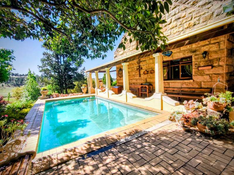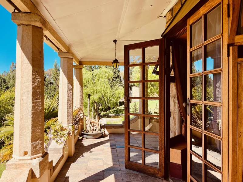 Sole Mandate This iconic sandstone property, located just outside Bethlehem on the N5, is steeped in history and widely regarded as one of the most beautiful sandstone homes in the Free State. Perfectly suited for development into a wedding venue, guest lodge, or boutique retreat, this hidden gem combines timeless architecture, lush gardens, and tranquil surroundings — offering a rare opportunity to own a property with both character and potential. The Main House The main residence features four spacious bedrooms and four elegant bathrooms. A sunken living area with a cozy fireplace creates the perfect atmosphere for relaxation, complemented by a dining room, study, chef’s kitchen, and family room — ideal for both private living and entertaining. Outside, a recreation area with its own bathroom, indoor braai area, and sleeping space for up to four guests makes this property perfect for hosting gatherings. Guest Accommodation Houtkapper (in Farmhouse) Spacious, artistic room in homely style with private entrance. Sleeps four. 1 King-size and 2 single beds En suite bathroom with bath and shower DSTV, kitchenette with two-plate stove, microwave, fridge, and dinnerware Tea/coffee and braai facilities Air conditioning, clean linen, towels, and electric blankets Kokkewiet (in Farmhouse) Charming attic room with old-world character and private entrance. Sleeps three. 1 King-size and 1 single bed En suite bathroom with bath Microwave, fridge, dinnerware, tea/coffee and braai facilities Balcony overlooking the garden Air conditioning, clean linen, towels, and electric blankets Tinktinkie (in Farmhouse) Bright, practical room with cheerful atmosphere and private entrance. Sleeps two. 2 Single beds, en suite with shower DSTV, microwave, fridge, dinnerware, tea/coffee and braai facilities Air conditioning, clean linen, towels, and electric blankets Tortelduif (Cottage) Sunny, rustic room with natural charm. Sleeps three. 1 Double and 1 single bed, en suite with shower Private sitting room with DSTV Kitchenette with fridge, microwave, two-plate stove, and dinnerware Veranda perfect for sundowners or a braai Jangroentjie (Cottage) Warm, homely space in nature’s colours. Sleeps three. 1 King-size and 1 small single bed, en suite with bath and shower DSTV, microwave, fridge, dinnerware, tea/coffee and braai facilities Veranda and undercover parking Additional Features Four garages Large stable Beautifully maintained gardens and dam Ample parking and outdoor relaxation spaces Whether you wish to continue its legacy as a guesthouse and function venue or transform it into a luxurious country estate, this remarkable property offers endless potential and undeniable charm. Contact us today to arrange a private viewing and make this extraordinary property yours.