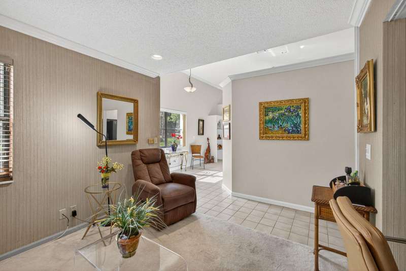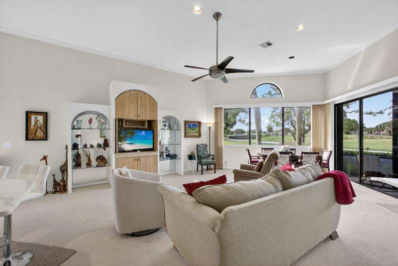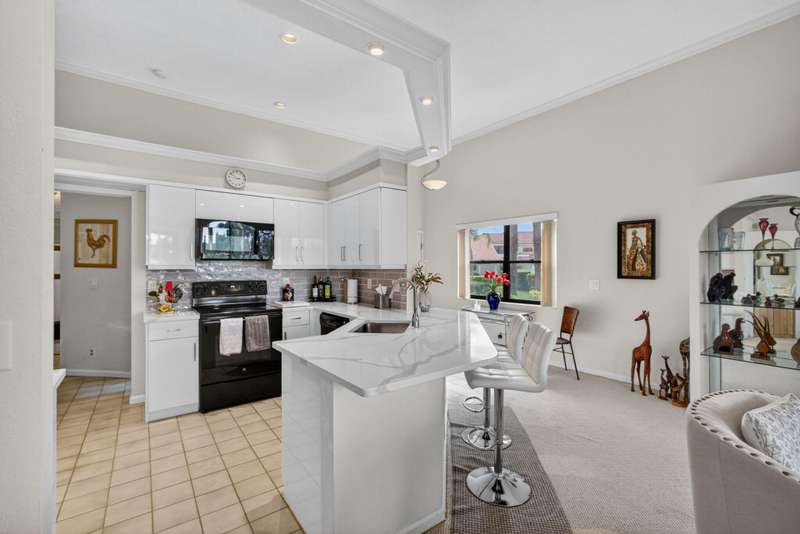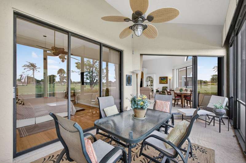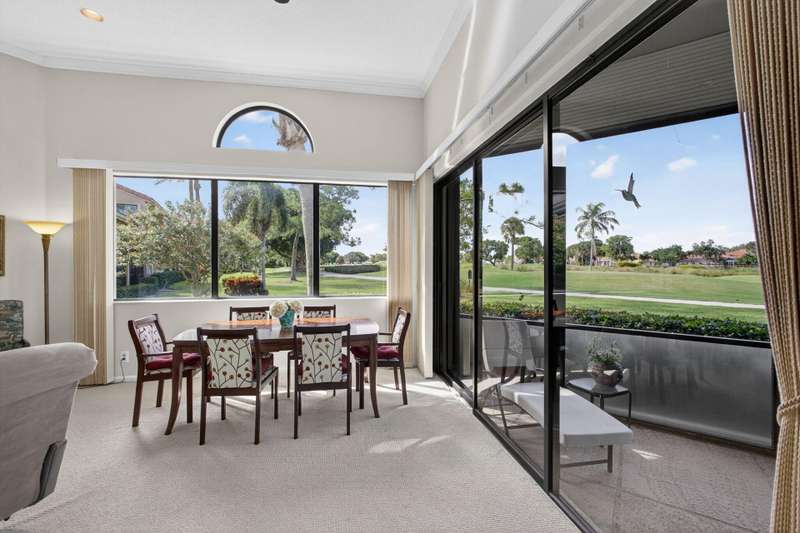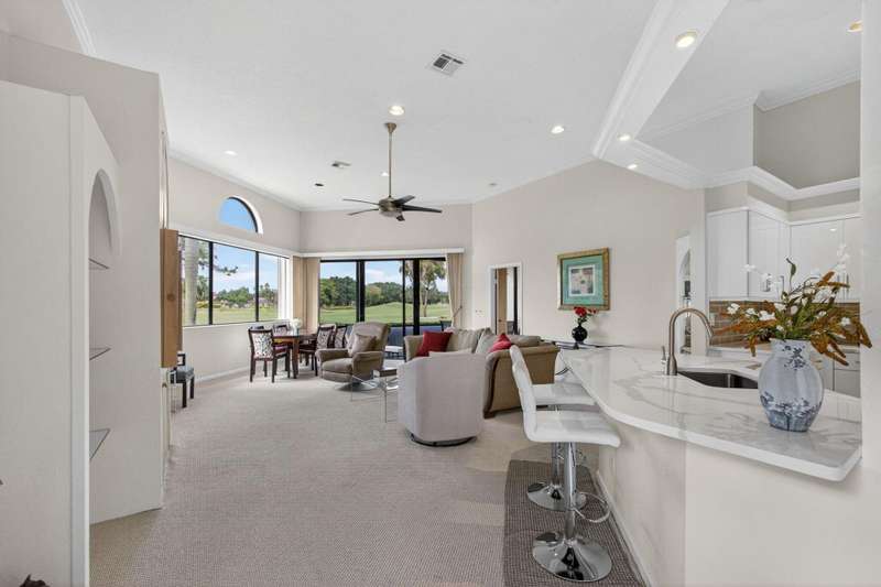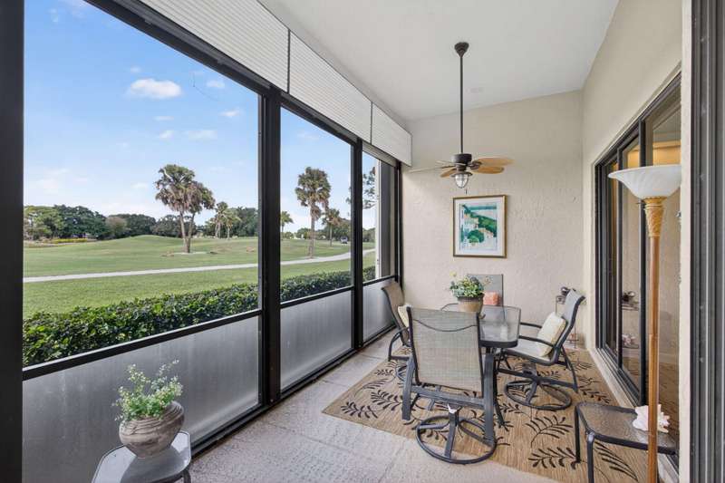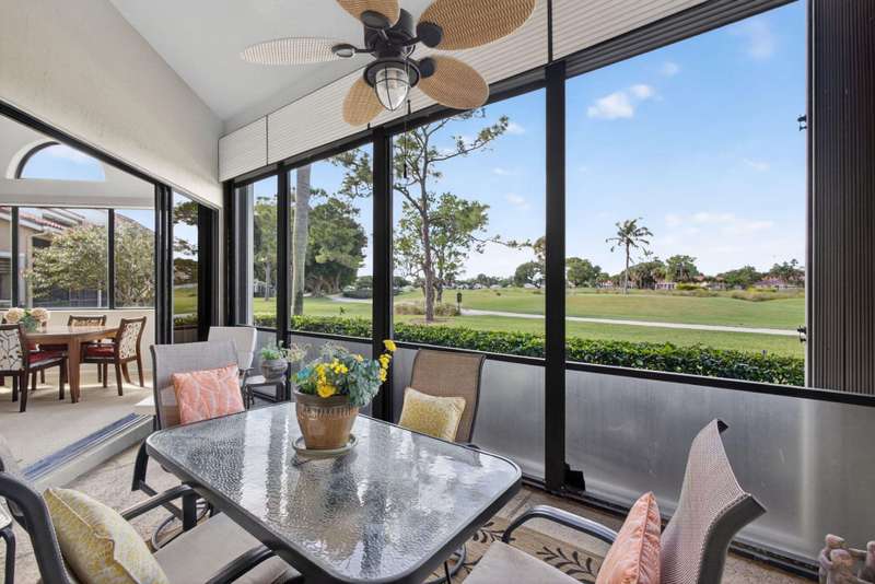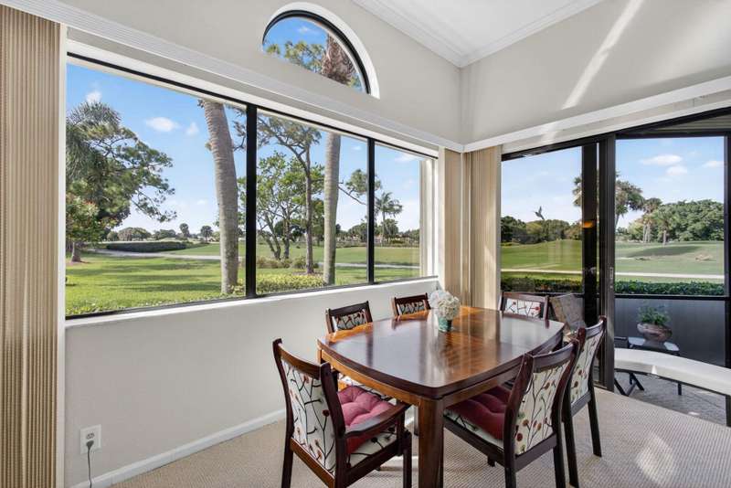 This one-story 2/2 unit also has a large den with a sleeper couch easily converts to a 3rd bedroom. located in the highly sought after private quite neighborhood of Windermere, PGA National Resort. Features vaulted ceilings, open living, new designer kitchen and bath, meticulously maintained. Light and bright fantastic panoramic views of the PGA General golf course, with a screened covered patio providing additional outdoor dining space. Large community pool with expansive covered sitting dining area a short walk away. Close to PBI International airport, restaurants, shopping, beaches, and cultural events. A perfect winter seasonal retreat, this is a must see.
