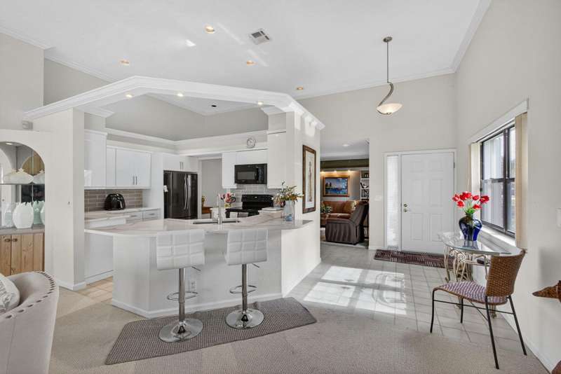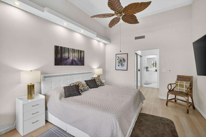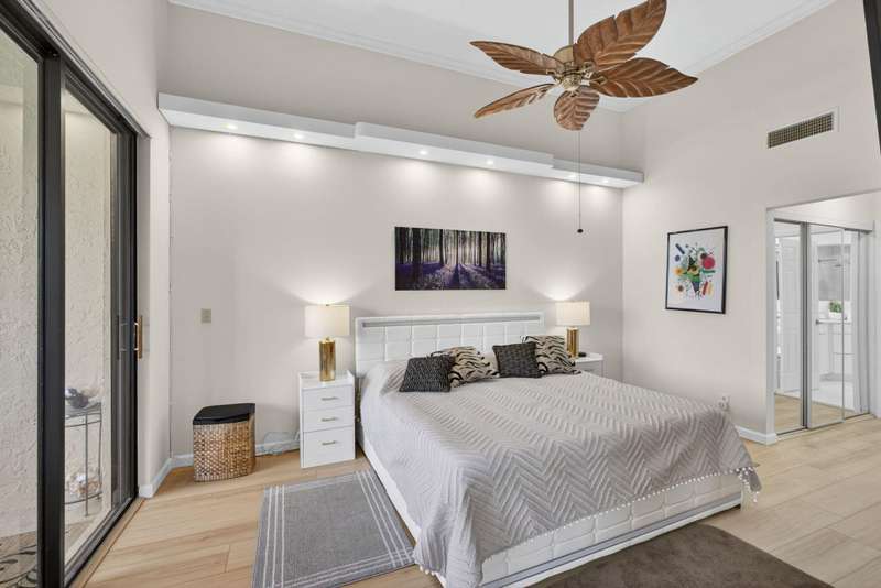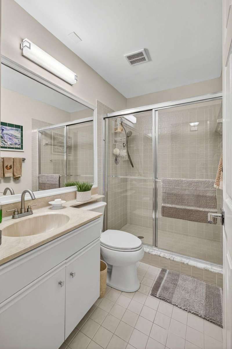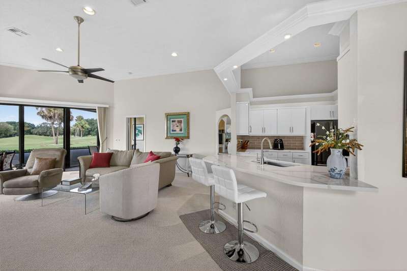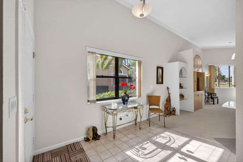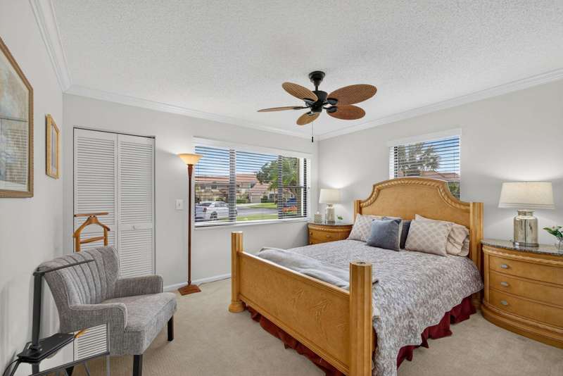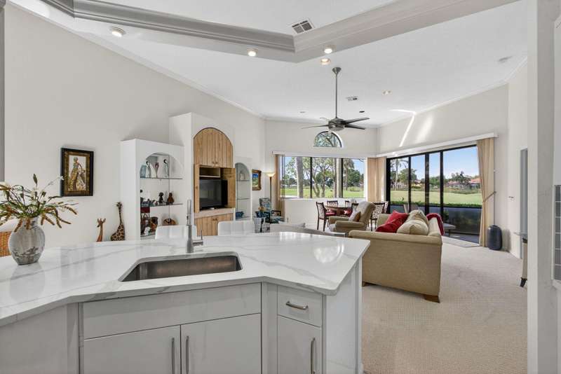 This one-story 2/2 unit also has a large den with a sleeper couch easily converts to a 3rd bedroom. located in the highly sought after private quite neighborhood of Windermere, PGA National Resort. Features vaulted ceilings, open living, new designer kitchen and bath, meticulously maintained. Light and bright fantastic panoramic views of the PGA General golf course, with a screened covered patio providing additional outdoor dining space. Large community pool with expansive covered sitting dining area a short walk away. Close to PBI International airport, restaurants, shopping, beaches, and cultural events. A perfect winter seasonal retreat, this is a must see.