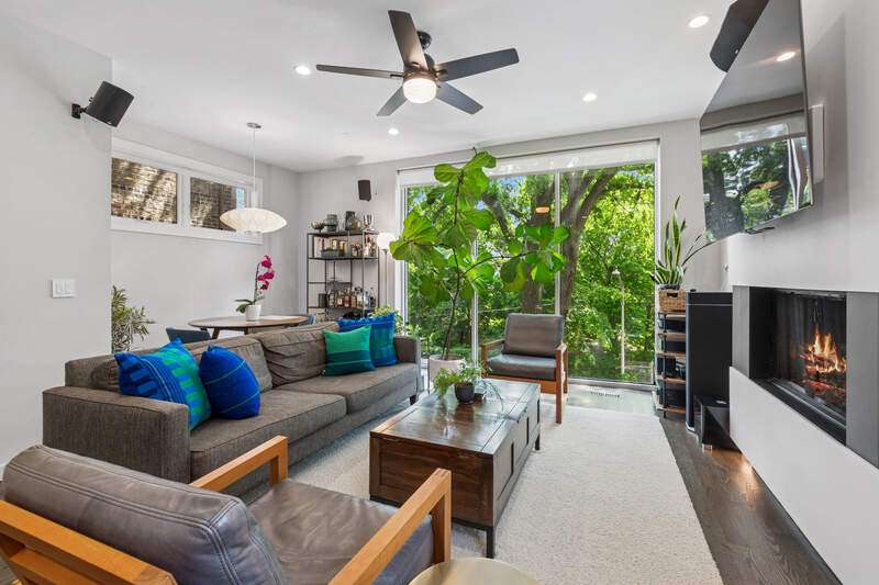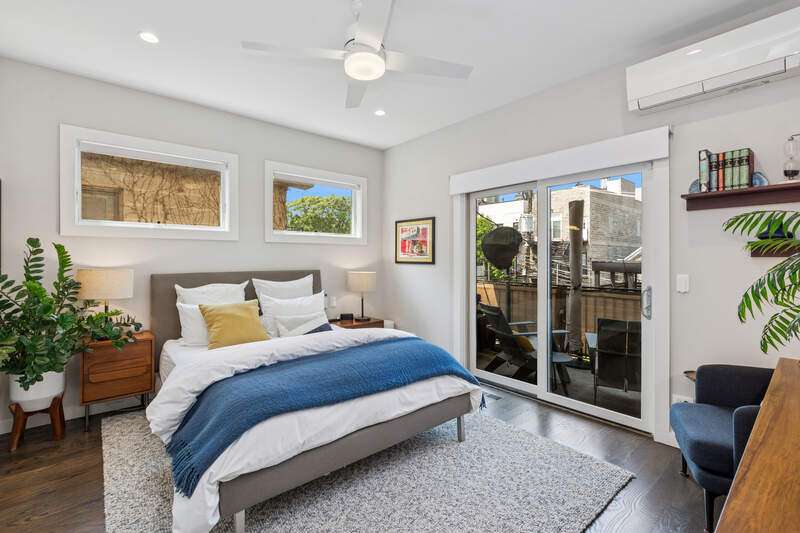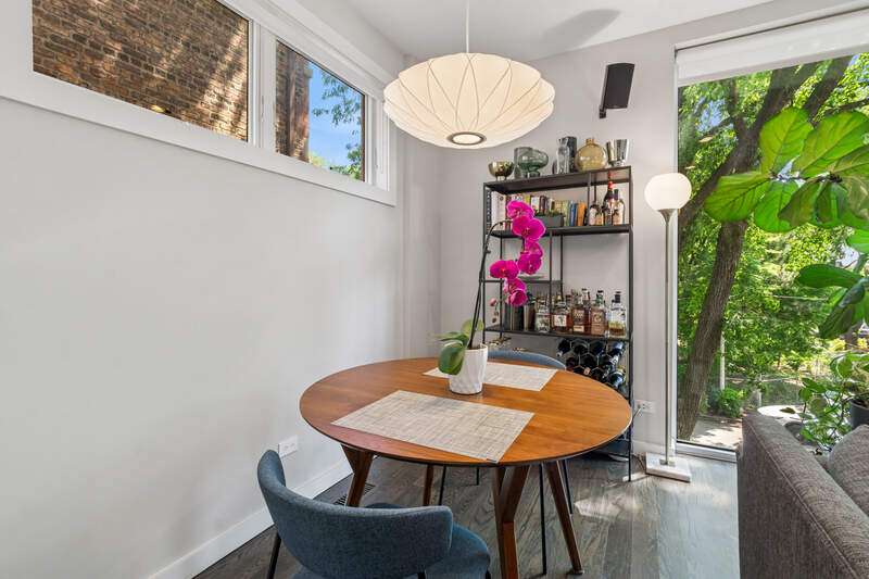 Located in thriving Bucktown, filled with new restaurants and boutique shops, discover a hidden oasis on a quiet, tree-lined street. This stunning 2 bed/2 bath condo is airy, bright, and offers a peaceful, secluded atmosphere you'll fall in love with. This property features a high-end kitchen appliance package, subway tile backsplash with under-mount lighting, quartz countertops on an extended peninsula, pendant lighting, and hardwood floors throughout. The floor-to-ceiling windows allow tons of natural light to come in, yet keep the city sounds out while you're eating breakfast or having a cup of coffee in the designated dining space. The primary bedroom at the rear of the unit has its own Mitsubishi Electric heating/cooling system (separate from the furnace and AC) while offering a serene, quiet setting. Additionally, the bedroom features a walk-in closet and an ensuite primary bathroom with heated floors, a heated towel rack, a dual vanity sink, and a steam shower. Off the primary bedroom is your private and tranquil balcony with a gas line for the grill and easy access to the garage and additional storage closet below. Local amenities include Midtown Athletic Club, Target, Leavitt St Inn, Marianos, Le Bouchon, Tama, Mirra, Map Room, Home Depot, Starbucks, Ed & Gene's, and all the restaurants, bars, and retail stores Damen has to offer. In the middle of everything, yet perfectly your own!