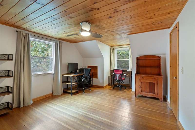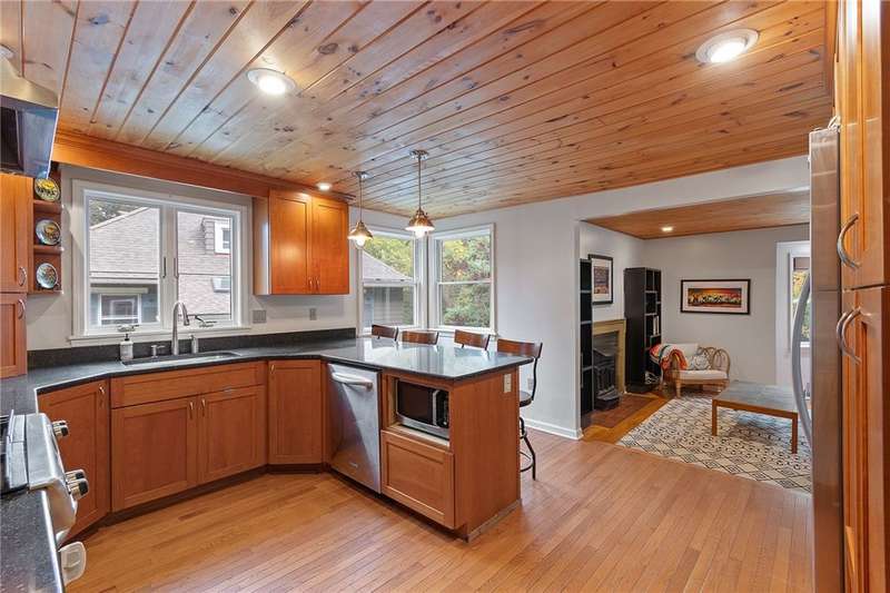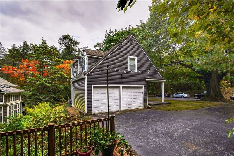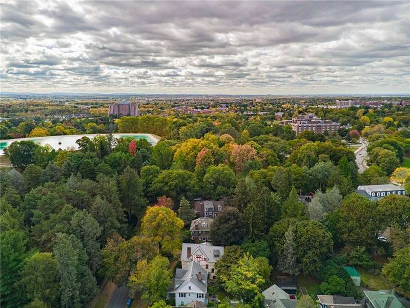 Please come tour this 3 bedroom/2 bath home that is a short distance to U of R, Highland and Strong and has over 83 acres of the Highland Park right across the road! You'll have a first row seat to the famous Rochester Lilac Festival- walk your pets, use the playground, exercise or just enjoy the incredible views from your COVERED FRONT PORCH or the private deck area! The GORGEOUS kitchen has a super, sleek industrial look! Solid surface counters, a LARGE "reach in" pantry, STAINLESS APPLIANCES, a HUGE breakfast bar (seats four!) and the open floor plan LIVING/DINING (and half bath) area is perfect for entertaining! The hardwoods and NATURAL wood ceilings, wood burning fireplace with an insert for more efficiency, recessed lighting and oversized windows give such a warm feel to this home! On the second floor you'll find three roomy bedrooms -the primary has THREE CLOSETS- two have sliders to lots of usable space! The FULL BATH on this level has a separate shower and soaking tub! There's two more bedrooms (one currently used as an office!) The FULL BASEMENT level is home to the laundry area (WASHER and DRYER STAY!) the well maintained forced air furnace with CENTRAL AIR CONDITIONING and the TANKLESS WATER HEATER! Add to all this an ATTACHED TWO CAR GARAGE and you've got all the comforts of home that's close to medical, entertainment, worship and shopping! Showing starts Wednesday 10/15 at the open house (5:00 to 6:30) and offers will be reviewed after 3pm on 10/22/25