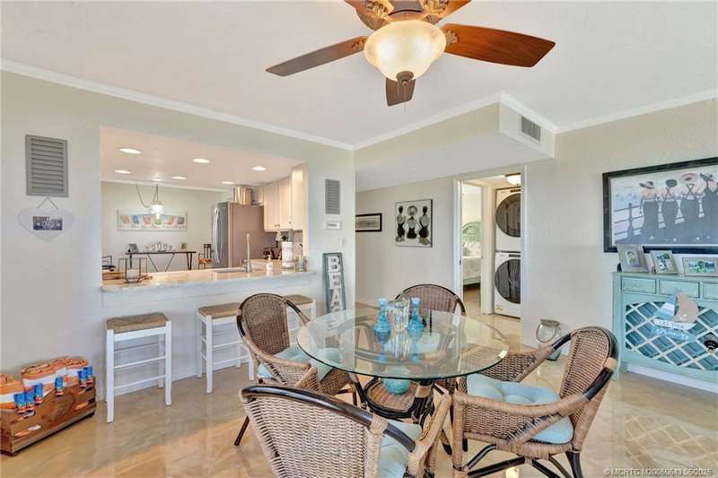 You've found your be?chfr?nt s?a??n?l retreat! This fully R?N?VATED 2BR/2BA CORNER unit in Miramar 1 has a stunning SE-facing wrap-around balcony offering panoramic views of the ocean horizon, lush mangroves, and pool. It's a BRIGHT 2nd-floor condo with plantation shutters throughout featuring marble flooring in the main living areas and a wood-look tile flooring in both bedrooms. The kitchen is updated with Quartz countertops, new Whirlpool appliances, and is fully stocked with kitchenware and cleaning supplies. Both bathrooms offer modern walk-in showers. This unit is move-in ready! Enjoy beachfront living with resort-style amenities including a heated pool, tennis courts, boardwalk beach access, and a clubhouse gym. It is close to restaurants on the island and the bridge into downtown Jensen Beach. Available for seasonal or extended rental. Book while it's available!