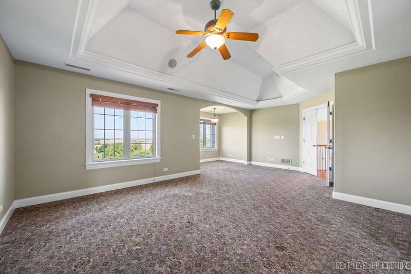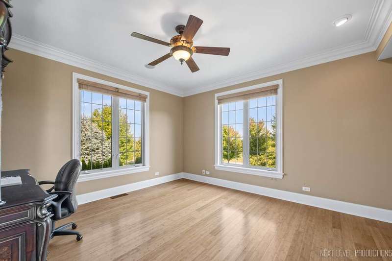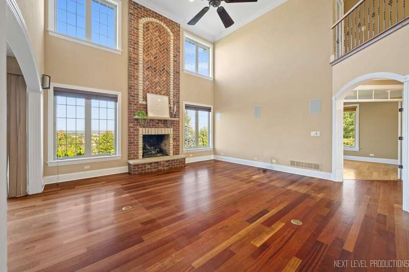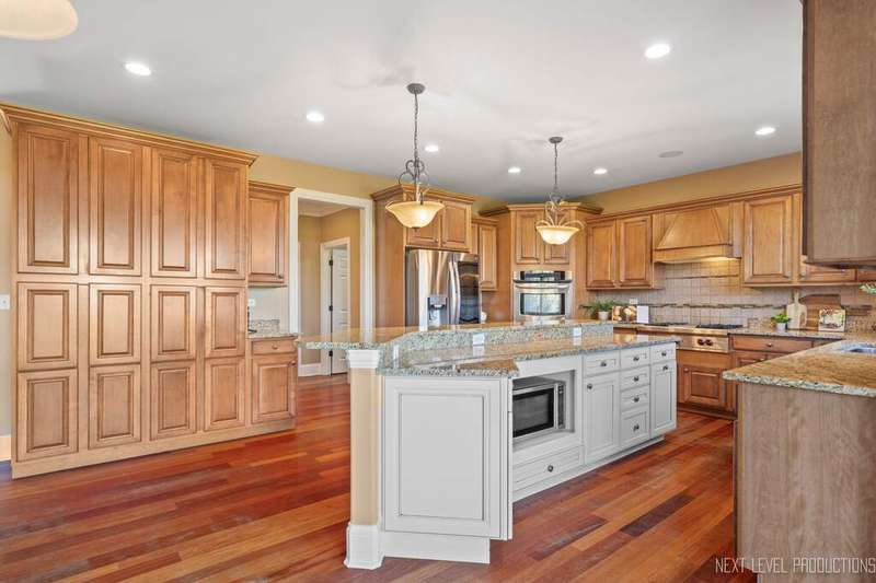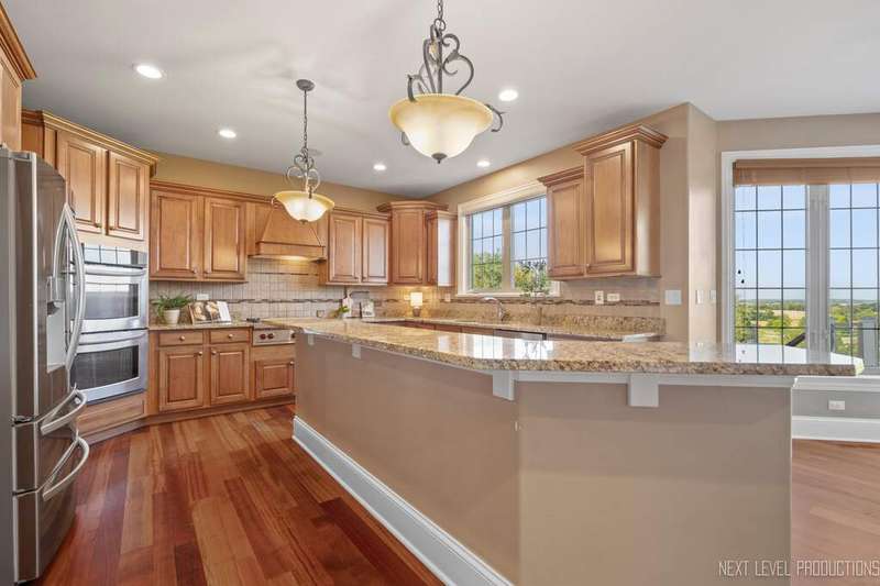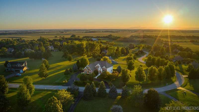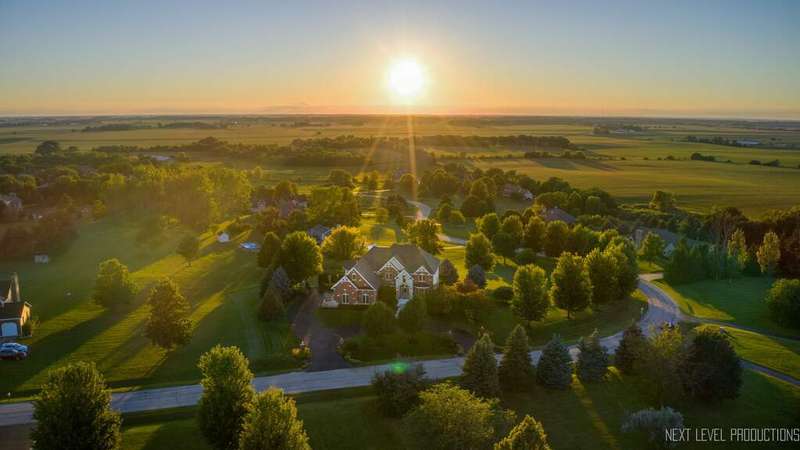 SPECTACULAR! Timeless craftsmanship with sweeping views of the rolling countryside, this Hampshire estate redefines elegance and comfort. Perched atop a gentle hill in the coveted Burlington Hills Subdivision this remarkable luxury residence offers nearly 4,200 square feet of refined living space. With 4 bedrooms, 4.1 bathrooms, first floor den, 3 car side load garage and a full walkout basement this home is designed for both grand entertaining and comfortable everyday living. Experience the elegance of open-concept design, enhanced by soaring ceilings, gorgeous Brazilian cherry floors and remarkable custom trimwork throughout. The two-story family room is drenched in sunlight with floor to ceiling windows. It features a stately brick fireplace that anchors the space with warmth and character. A chef's dream kitchen is complete with: granite countertops, oversized island, SS appliances with double ovens and Wolf range, maple cabinets, XL cream colored island and butlers pantry with extra cabinets and ice maker. This space flows seamlessly into the living and dining areas, where bay windows are a reminder of the home's exquisite detail and sophistication. The LARGE mudroom provides everyday functionality in style with built-in cubbies and work sink. The primary suite is a private retreat of exceptional scale - A serene sitting area offers the perfect nook for reading or a home office. There is a sense of indulgence at every turn in the spa-inspired bath boasting double sinks, walk-in shower and separate soaking tub. The suite's oversized walk-in closet-complete with a center island-feels like a boutique dressing room designed to feel luxurious and functional. Bedroom 1 & 2 are generously sized with walk-in closets and built-in desks - custom & adorable. Bedroom #3 has a vaulted ceiling with large Palladian window, XL WIC and private bath. There is convenient upstairs laundry and full hall bathroom with double sinks. The home's thoughtful design ensures both convenience and luxury at every level. With a walkout basement complete with true kitchen, full bathroom, workout room/bedroom, sauna and an abundance of storage. The unique layout lends itself nicely to multi-generational living. This amazing area truly offers an additional 2000 sq. feet of REAL living space. The impressive exterior is a showstopper: cedar gables, smart siding, stone and brick facade, multi-tier deck, outdoor fireplace, paver and stamped concrete patio, outdoor surround sound, horseshoe driveway, lush & mature landscaping. The setting is nothing short of spectacular with sweeping views of the endlessly stretching lush green hills. Tranquility by day and breathtaking sunsets each evening. This property is a rare blend of sophistication, comfort, and natural beauty. This Highland Drive estate is one of a kind. Upgrades & Features include: NEW ROOF, new washer and dryer, newer extra deep well pump 2017, double water heaters 2018, 2 - 200 amp breaker boxes, irrigation system, 3 new garage door openers, and piped surround sound throughout home. These are the original owners who custom built this property and have taken amazing care of it throughout the years. Township - Burlington * Subdivision - Burlington Hills * Central Schools * Highest point in subdivision. One of the highest elevation points in Kane County *******