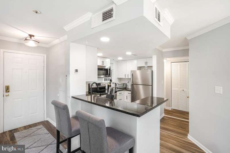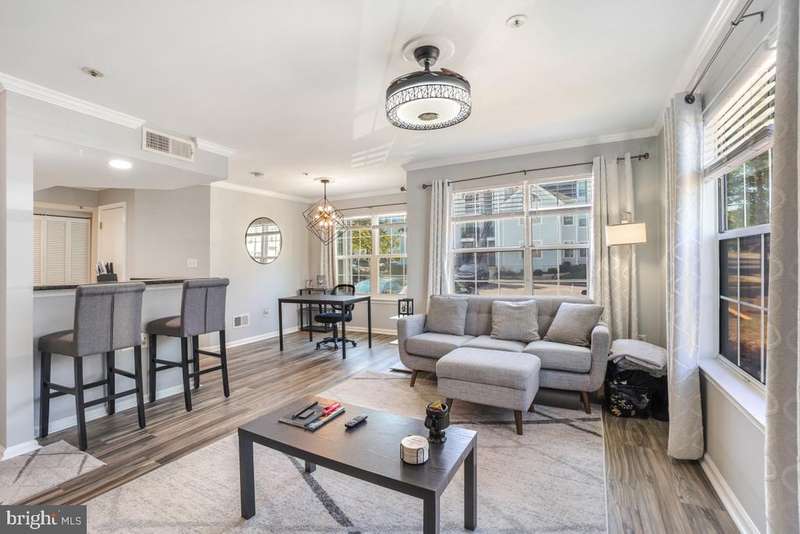 Modern, stylish, and wonderfully located, this updated condo stands out from the rest! No detail was overlooked. From the Bluetooth ceiling fan in the living area to the bold dining room chandelier, every feature adds personality and flair. Gorgeous flooring runs throughout the bright, open layout filled with natural light. The kitchen is beautifully upgraded with granite countertops, stainless steel appliances, motion-sense faucet, recessed lighting, and wood accent details. Both bathrooms are thoughtfully designed, with the primary suite featuring a marble double vanity, walk-in shower with striking tile, and a spacious walk-in closet. Step outside to enjoy the evening air on the private patio. There's also outdoor storage for added convenience. This home is far from cookie-cutter, stylish finishes and smart features are found throughout, including keypad entry. Ideally located near parks, trails, shopping, and endless dining options. Easy access to the ICC and major commuter routes to DC and Baltimore. Comes with 3 parking spaces. This is the one youve been waiting for. Schedule your showing today.