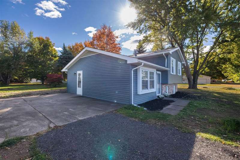 Picturesque vineyard views can be found all around this recently renovated Tri-level in North East. Move right in and enjoy the quiet life on this scenic township road. Complete interior upgrade - new furnace and central AC, new roof, new kitchen cabinets, countertops and fixtures (2025), upgraded bathroom, new flooring (2025), and added lower level window egress. Entry level features a light-filled living room and full kitchen with dining area and backyard walkout. Second floor includes a spacious primary bedroom, two secondary bedrooms and a jack-and-jill full bath with primary bedroom access. Bonus lower level versatile space - can be utilized as a private bedroom suite, home office or family room. Sitting on nearly 3/4 of an acre, this private lot offers shaded space and beautiful countryside views with plenty of room to enjoy. As you exit the property, you'll be met with crisp views of Lake Erie - something to behold as the vineyards meet the horizon.