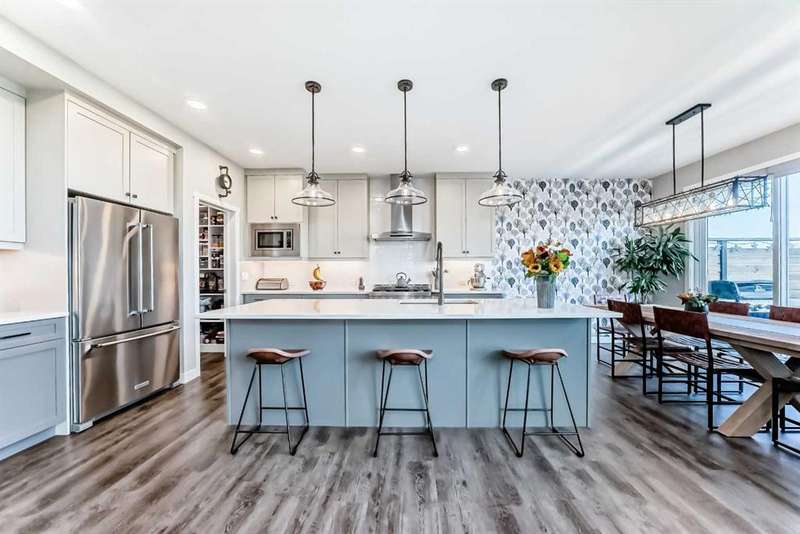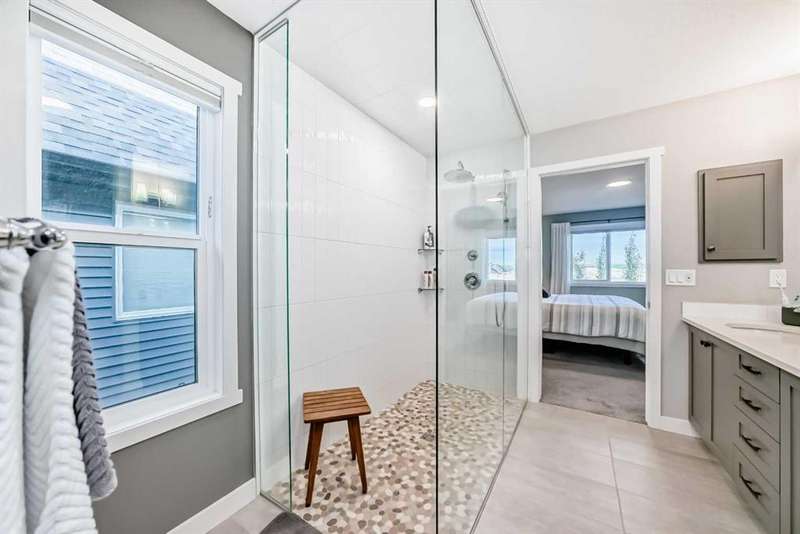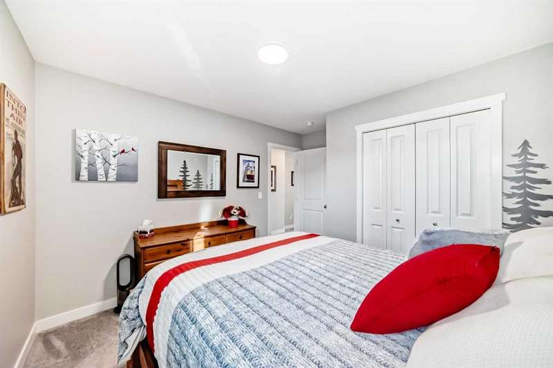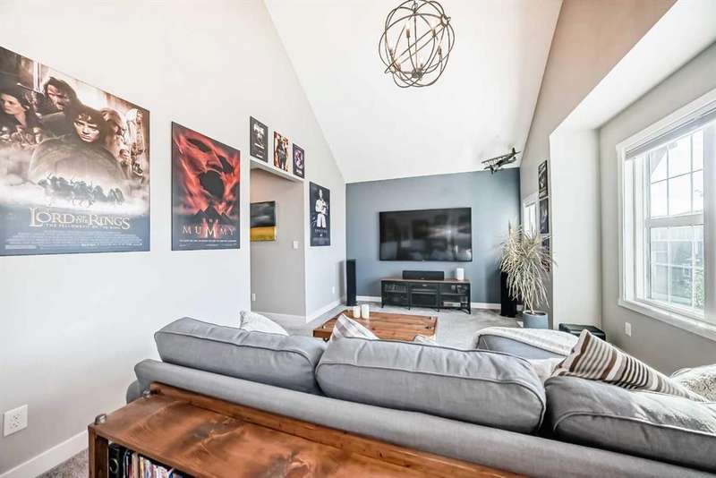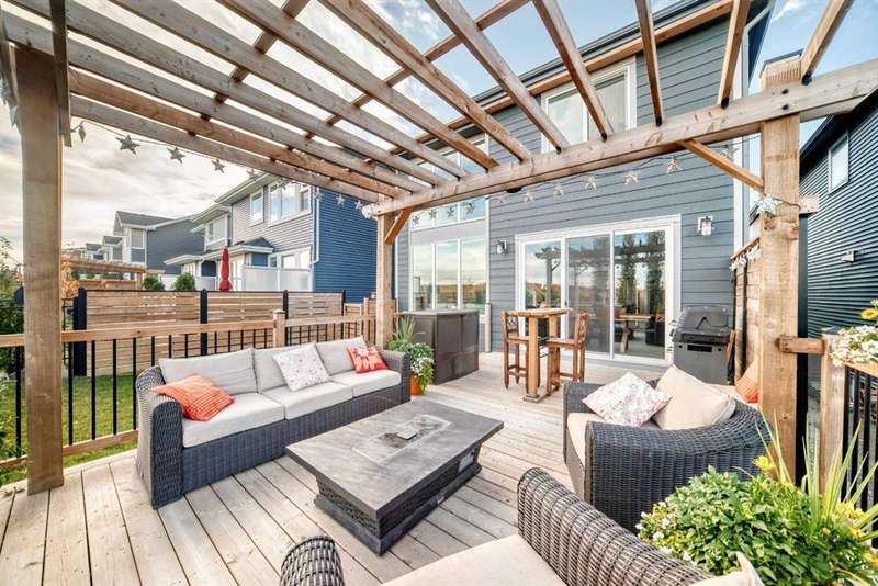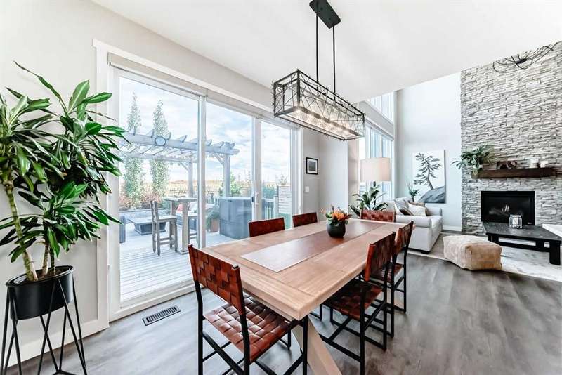 204 Sunrise Common is a remarkable home and offers over 2,100 sq ft of beautifully designed living space. It features a heated garage with an extended area, complete with a workshop space, an 8Ft door, a sink with hot and cold water access, and a separate side entrance for convenient yard access. The lovely backyard backs to a future walking path and green space, featuring a fantastic deck with a pergola, a built-in bar table, a gas hookup for a BBQ, and a fire table, making it perfect for outdoor gatherings. Inside, you'll be greeted by high ceilings, highlighted by a magnificent gas fireplace surrounded by floor-to-ceiling stone. A walkthrough pantry connects the garage to the kitchen, equipped with California closet organizers, ceiling height cabinets. Culinary enthusiasts will appreciate the six-burner gas range, built-in microwave, quartz countertops, and spacious island, all ideal for entertaining guests. James Hardie siding creates stunning curb appeal along with the landscaped yard Upstairs, a convenient laundry area features a countertop, and a built-in drying rack, enhancing the home's functionality. The bonus room boasts vaulted ceilings, creating an airy atmosphere while also offering scenic mountain views. All the bathrooms have quartz countertops with under mount sinks. The 4 pc primary ensuite features a fully tiled oversized shower and a dual vanity. The unfinished basement provides endless possibilities for customization to suit your personal style. This exceptional home perfectly blends comfort, style, and practicality, and is located near Ranchview K-8 School, St. Tim's 8-12 High School, shopping, walking paths, and parks in the family-friendly neighborhood of Sunset. Don’t miss this incredible opportunity—schedule your showing today!