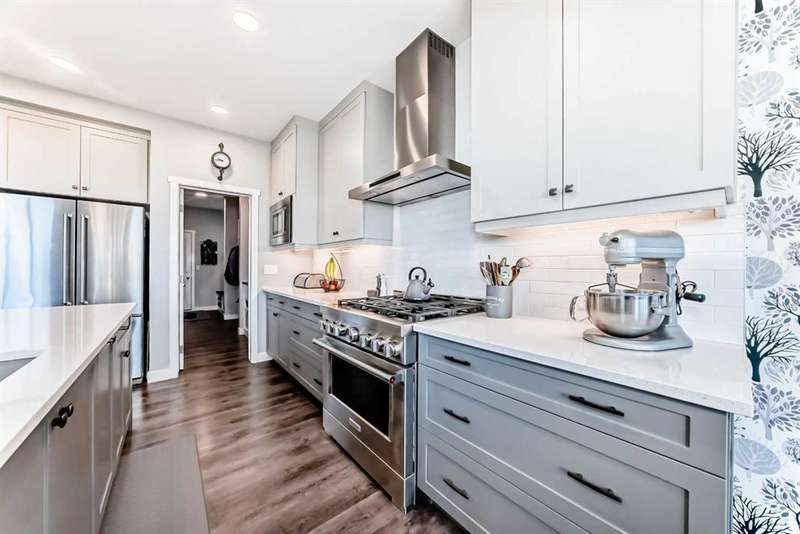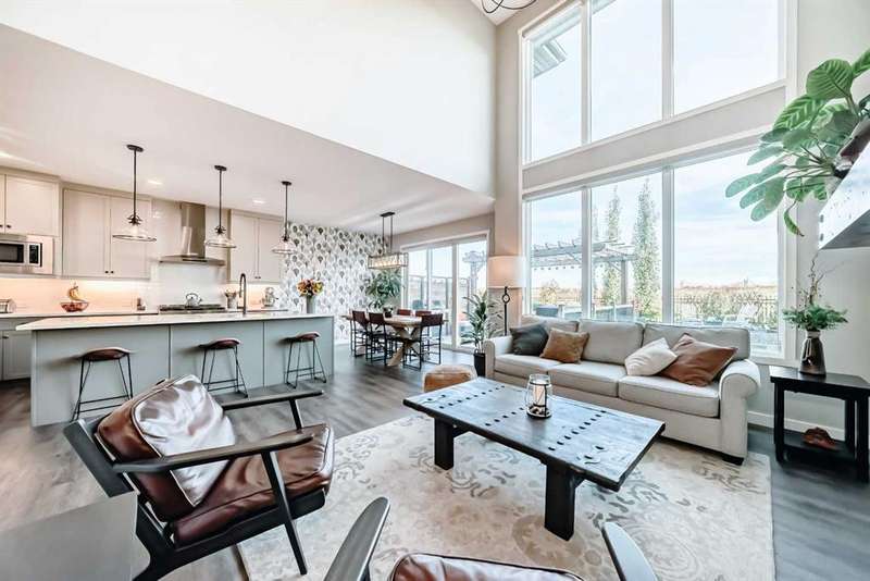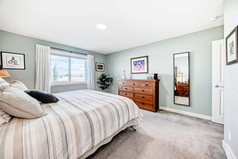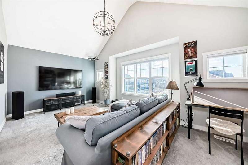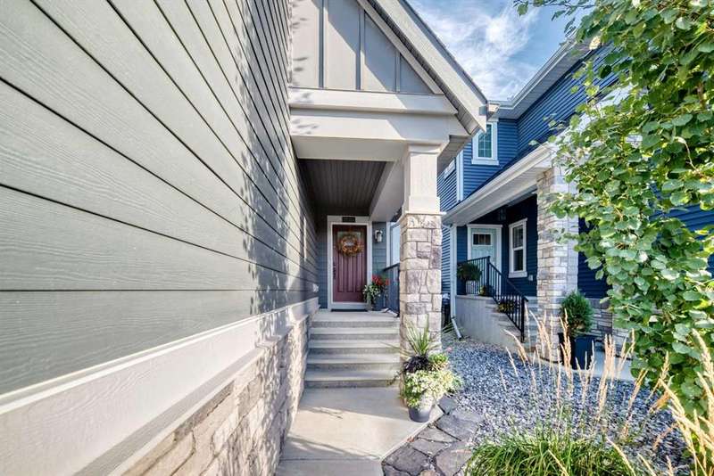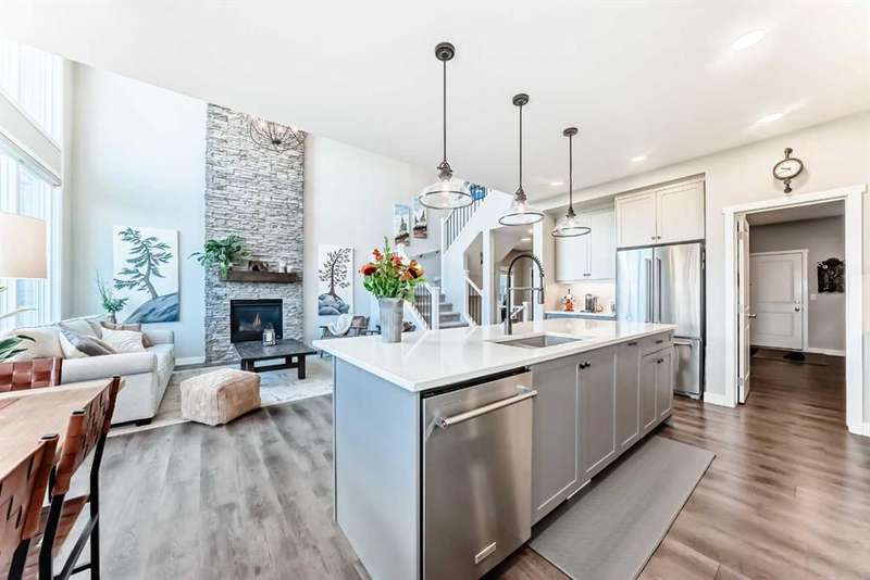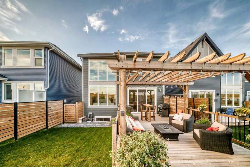 204 Sunrise Common is a remarkable home and offers over 2,100 sq ft of beautifully designed living space. It features a heated garage with an extended area, complete with a workshop space, an 8Ft door, a sink with hot and cold water access, and a separate side entrance for convenient yard access. The lovely backyard backs to a future walking path and green space, featuring a fantastic deck with a pergola, a built-in bar table, a gas hookup for a BBQ, and a fire table, making it perfect for outdoor gatherings. Inside, you'll be greeted by high ceilings, highlighted by a magnificent gas fireplace surrounded by floor-to-ceiling stone. A walkthrough pantry connects the garage to the kitchen, equipped with California closet organizers, ceiling height cabinets. Culinary enthusiasts will appreciate the six-burner gas range, built-in microwave, quartz countertops, and spacious island, all ideal for entertaining guests. James Hardie siding creates stunning curb appeal along with the landscaped yard Upstairs, a convenient laundry area features a countertop, and a built-in drying rack, enhancing the home's functionality. The bonus room boasts vaulted ceilings, creating an airy atmosphere while also offering scenic mountain views. All the bathrooms have quartz countertops with under mount sinks. The 4 pc primary ensuite features a fully tiled oversized shower and a dual vanity. The unfinished basement provides endless possibilities for customization to suit your personal style. This exceptional home perfectly blends comfort, style, and practicality, and is located near Ranchview K-8 School, St. Tim's 8-12 High School, shopping, walking paths, and parks in the family-friendly neighborhood of Sunset. Don’t miss this incredible opportunity—schedule your showing today!