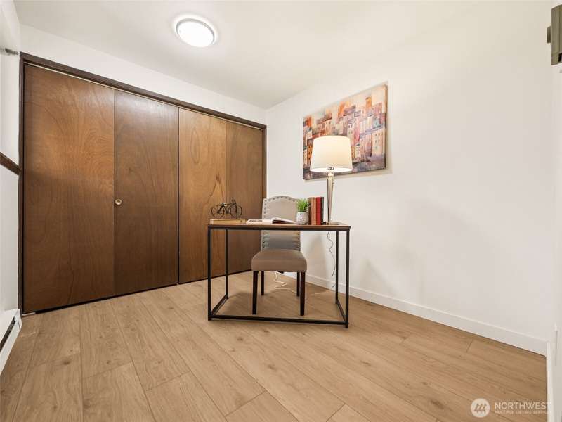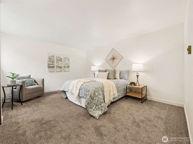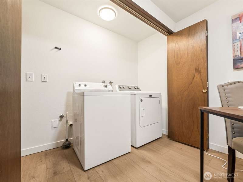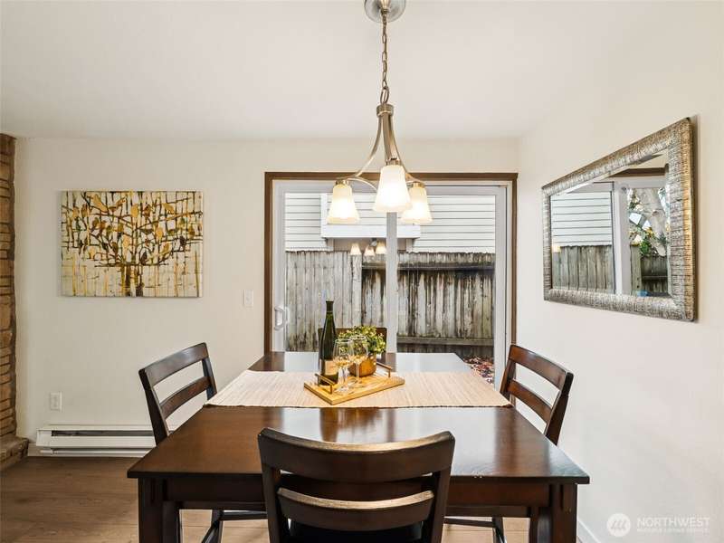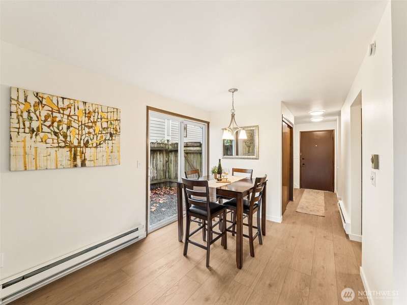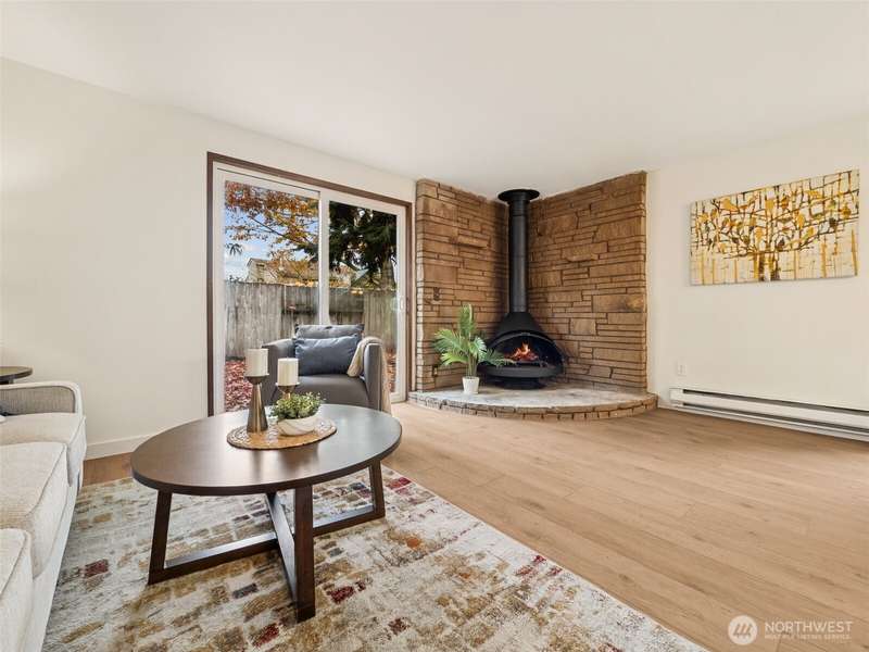 Valley Aire ground-level, 2-story condo lives like a townhome and shines with fresh updates throughout! All-new LVP on the main floor, new carpet upstairs, and brand-new interior paint. Living room features a large, cozy wood stove and two newer glass sliders leading to your private fenced patio/yard. The kitchen opens to the dining area with a handy pass-through to the living room, and the newer SS fridge is included. A large laundry room offers pantry or desk space, plus W&D stay. The well-maintained complex has new windows throughout. With its comfortable layout, great price, and move-in ready condition, this is a standout value. Close to parks, trails, schools, shopping, and commuter routes. Garage w/new door + off-street parking also.