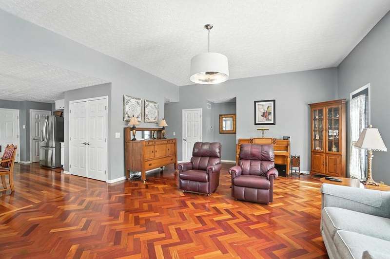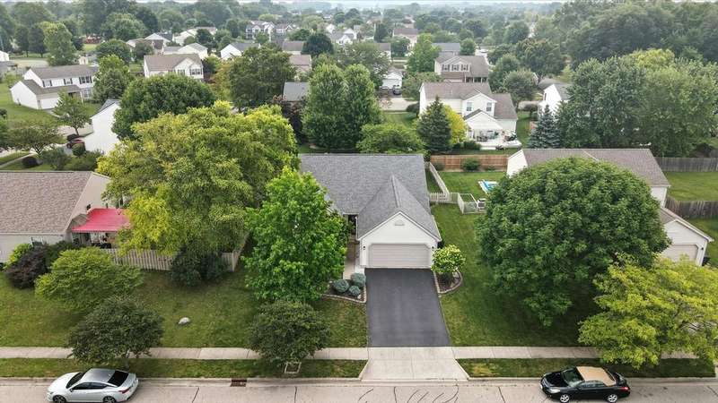 Welcome home to this inviting 3-bedroom, 2-bath ranch in the desirable Hoover Park subdivision where you can leave the steps behind! Designed with everyday comfort in mind, the open floor plan seamlessly connects the large great room, anchored by a cozy fireplace, to the heart of the home. Natural light pours across custom hardwood floors, creating a warm and welcoming atmosphere throughout.The kitchen blends style & function with white cabinetry, granite countertops, & stainless-steel appliances, making it a perfect gathering space for meals & conversations. A split bedroom design ensures privacy, while the finished basement offers an additional 380 square feet of versatile living space for work, play, or relaxation. Step outside to enjoy a private patio & fenced yard, ideal for outdoor entertaining or quiet evenings at home. With a 2-car attached garage and thoughtful details throughout, this home is ready for its next chapter.