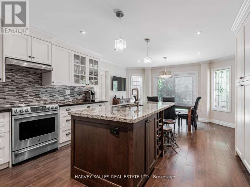 Welcome to 85 Franmore Circle! This spacious 5-bedroom home offers over 3,400 sq. ft. of living space in the heart of prime Thornhill. The renovated kitchen features ample cabinetry and storage, granite countertops, and a large island with double sink and breakfast area, with direct walk-out to the backyard. Additional highlights include a brand-new stair runner, renovated upstairs bathroom, smooth ceilings in the dining room, and a bright, open foyer with wall paneling leading up the stairs. Step outside to your private backyard oasis, complete with a gated pool area (new pool liner 2025, new pump 2024, pool heater not in working condition). The premium pie-shaped lot offers exceptional privacy with mature trees. Conveniently located near Beth Avraham Yoseph of Toronto Synagogue, Garnet A. Williams Community Centre, shopping, public transit, parks, and excellent schools including Yorkhill Elementary, Thornhill Public School, Netivot Hatorah Day School, and Kayla's Children Centre and more. ** Being sold in "As-is, where-is" condition. No warranties included **. (id:6370)