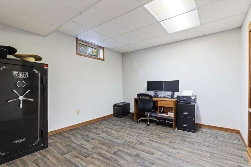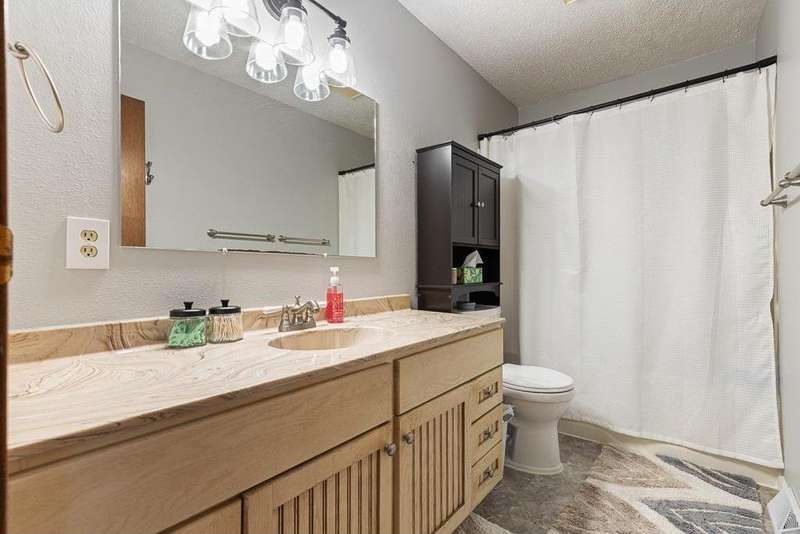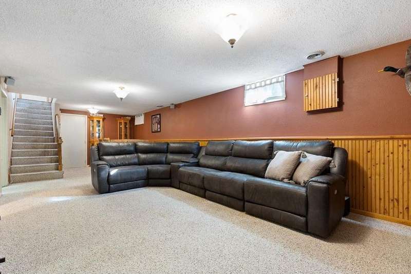 Welcome home to this inviting single-story charmer, complete with a brand-new roof for peace of mind and lasting value! Offering the perfect blend of comfort, warmth, and functionality, this home features 3 main-floor bedrooms and 2 bathrooms and is designed to make everyday living easy and enjoyable. Step inside the front door and you’re welcomed by a comfortable living room with a large front window, the ideal space to relax or gather with friends and family. Just beyond, the heart of the home unfolds with an open kitchen and dining area featuring beautiful wooden cabinets and a wraparound island with casual seating — perfect for morning coffee, quick meals, or hosting guests. A patio door off the dining room leads to your back deck overlooking a spacious, fully fenced backyard, complete with a bonus storage shed and plenty of garden space ready for your green thumb. The lower level extends your living space even further with a cozy family room centered around a classic brick gas-burning fireplace, a flex room that makes an ideal home office or den, plus a large utility and laundry area and additional storage for all your seasonal needs. With thoughtful updates, versatile living spaces, and outdoor features you’ll love, this home is ready to welcome you home.