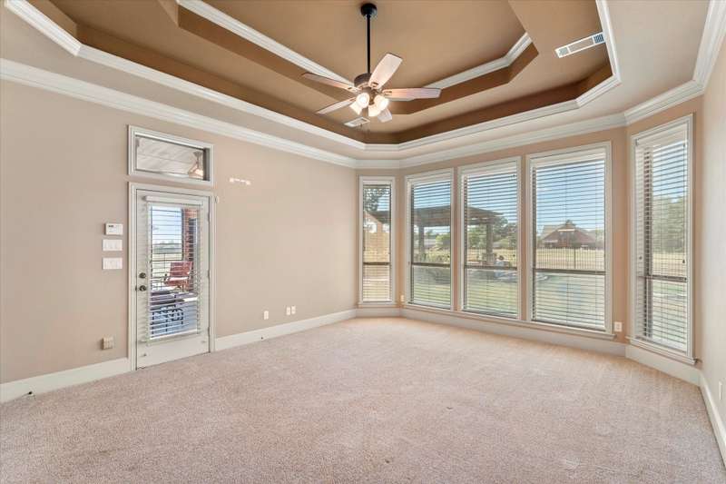 Single Story Living with a Second Primary and Living Space. This one has just what you are looking for in central area of Heath Rockwall! This four bedroom home is situated on over an acre. Outdoor living space made for gatherings and quiet nights under the stars. With four bedrooms on one level and large closets in each there is room for everyone and even a few guests! This home has keyless entry, Wine storage in the kitchen as well as granite countertops, and rich wood cabinetry. The living room invites you to unwind by the fireplace, making every cool evening feel warm and cozy. Far enough outside city limits to see the stars and close enough to shopping dining and activities in town or at the lake to be accessible in just minutes!