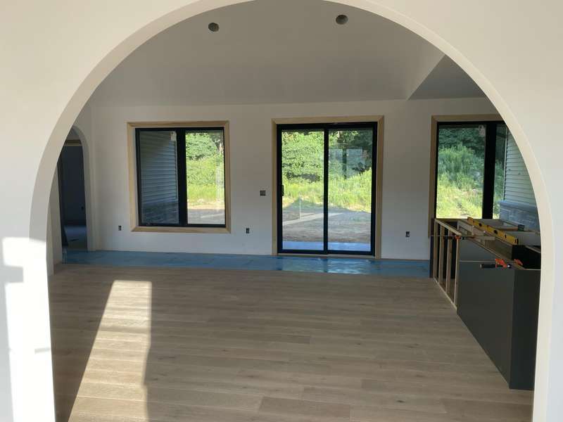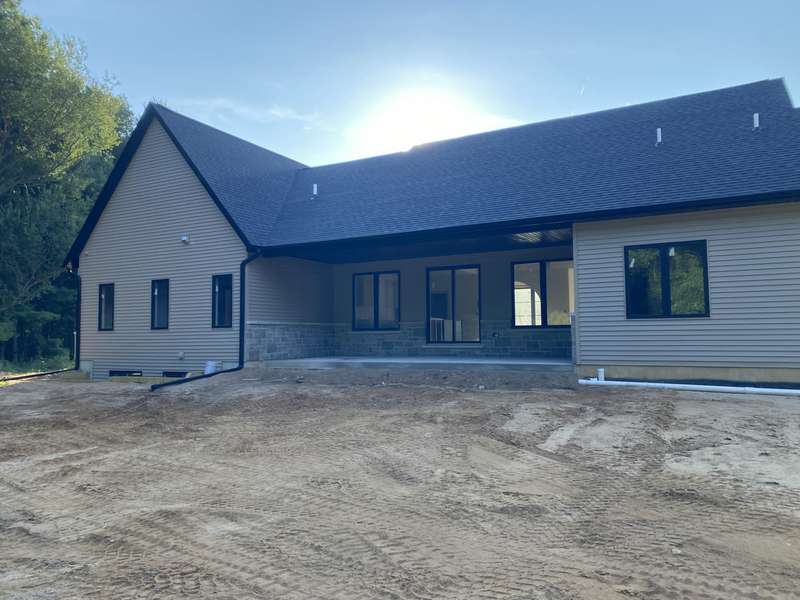 Step into luxury with this beautiful, modern 3-bedroom, 2.5-bath ranch. Natural light floods the main floor thanks to the 9' ceilings & oversized windows. The stunning great room is highlighted by a vaulted ceiling, a stone fireplace, & European Oak hardwood flooring. Extend your living space outdoors with a 340sqft covered patio, capturing sunset views. The gourmet chef's kitchen is equipped with a 4x10 center island with snack bar, a coffee nook, a walk in pantry, & a formal dining area. Discover the convenience of a main-floor laundry close to the primary suite featuring oversized tile shower, double vanity with quartz counters plus walk-in-closet. Two additional spacious main flr bedrooms with great closet space plus one with private half bath. Convenient office completes main level . Wonderful potential for future living space in lower daylight level, including plumbing for additional bathroom. Finished (drywalled & painted) 3 car garage with plenty of additional storage space in the attic above.