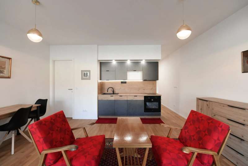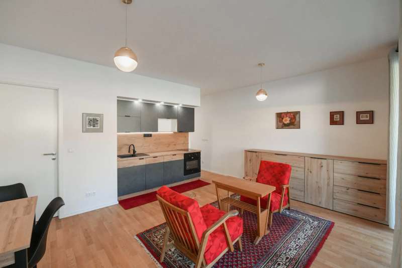 We offer for rent a completely new furnished studio-apartment with a separate sleeping area located on the 2nd floor of the project. The apartment, measuring 44 m2, features a spacious living room with a fully equipped kitchen, a separate sleeping area with a bed and a wardrobe, an entrance hall with a wardrobe and a window, a bathroom with a shower, toilet (with a bidet shower) and washing machine, and a covered loggia of 4 m2.