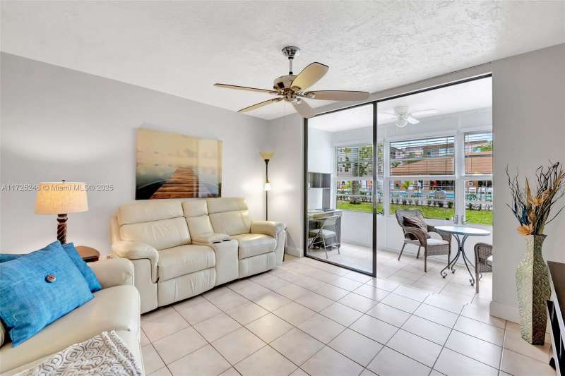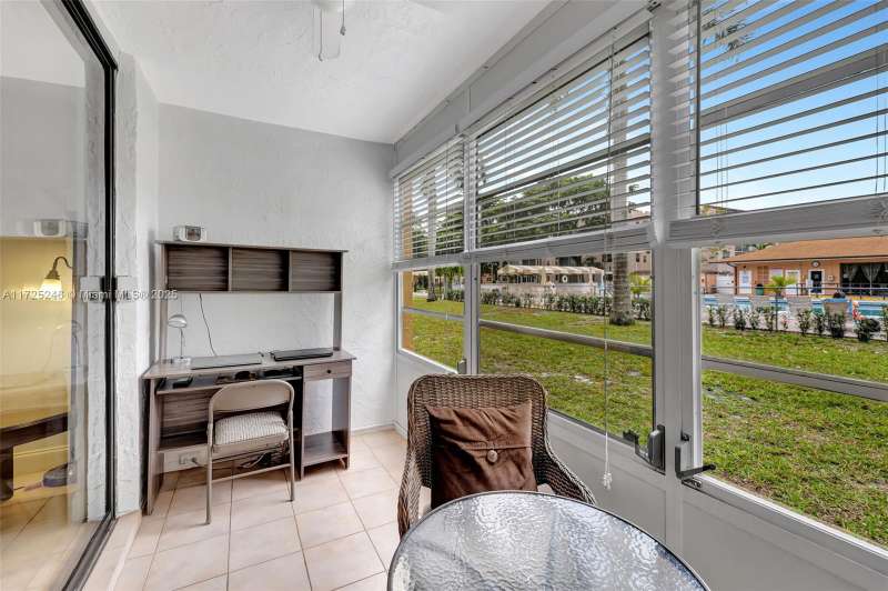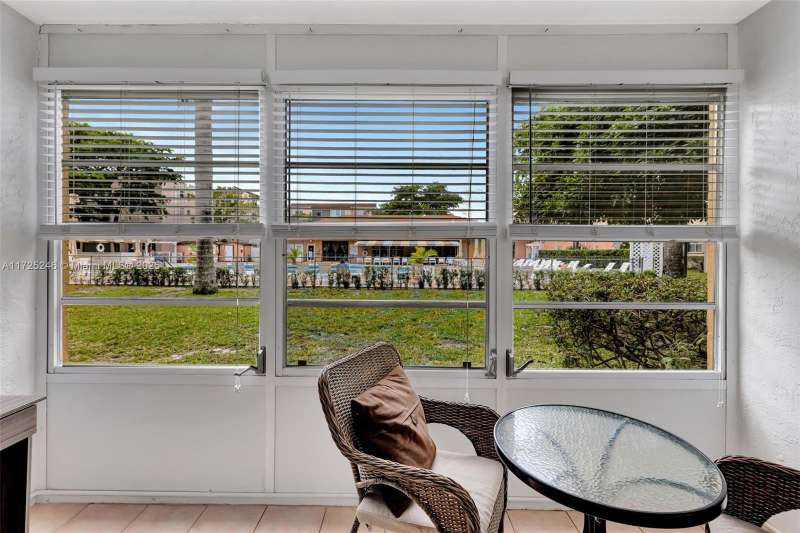 Welcome home! This spacious corner unit boasts the largest model of 2-bedroom, 2-bath. Directly on the first floor, just walk right in! Enjoy the pool views from your living area and from your sunroom or balcony! Perfect for relaxation or entertaining. This updated unit comes fully furnished and turnkey with a brand new AC from 2024 & both bathrooms were updated. Lots of natural light Don't miss your chance to own this gem. Located in a HOPA Verified and gated community, Somerset offers lots of amenities, including a pool, BBQ area, billiard room, gym, shuffleboard, & pickleball courts. Near the malls & restaurants & just 6 miles from the beach! This unit includes one parking space & a storage unit. Must own 3 years before renting.