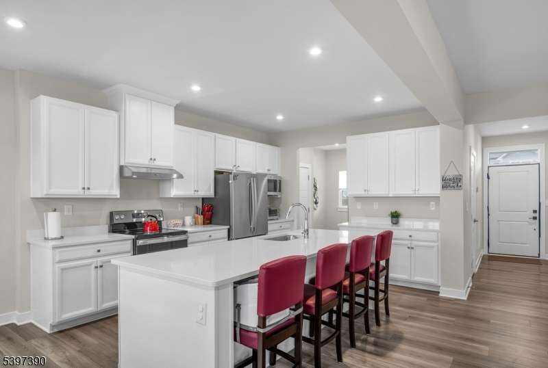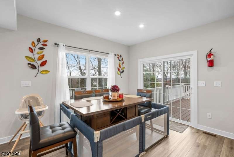 Move right in and enjoy the perfect blend of comfort, space, and style in this newer construction home! Designed and built in 2023. This pristine property offers seasonal lake views, abundant natural light, and stunning sunset backdrops.A welcoming covered front porch leads into a spacious foyer with a coat closet and a private office ideal for remote work or a peaceful retreat. The open-concept main level seamlessly connects the kitchen, dining, and living areas. The chef's kitchen features a large center island, walk-in pantry, and generous workspace, perfect for both everyday living and entertaining. A convenient half bath and direct access from the two-car garage add ease to your daily routine.The second level offers four generously sized bedrooms, two full baths, and a well-placed laundry room. The primary suite impresses with two walk-in closets and a spa-like bath with dual sinks. Several bedrooms showcase ample closet space and seasonal lake views. The walk-out basement partially finished and complete with a full bath opens to a private patio, providing flexible space for recreation or guests. Step onto the maintenance-free deck off the dining area and unwind while enjoying beautiful sunset views. This move-in-ready, newer construction gem has it all just unpack and start living! Includes the Original 10 Year Builder's Warranty.