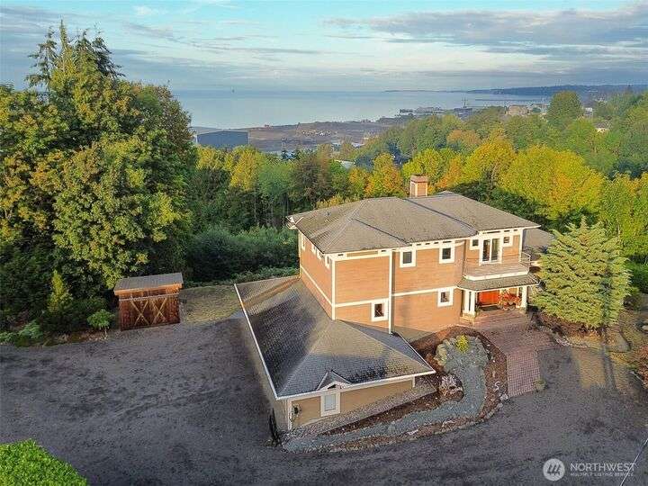 Absolutely stunning 3 bedroom, 4 bath, water view home with a second kitchen and additional entry downstairs. As you enter up the main steps & past the covered front porch, soaring floor to ceiling windows in the central great room welcome you home, and perfectly frame a view of Mount Baker & the Strait of Juan de Fuca. Red oak hardwood flooring, a chef's kitchen, 4 car garage w/ shop space, multiple water and mountain view decks, security system & solar activated exterior lighting, huge jetted tub in primary bath & dual head walk-in shower. This wonderfully maintained home offers luxury NW living right in the heart of Port Angeles. Close to all amenities, shopping, restaurants, the Victoria Coho ferry, and The Olympic National Forest.