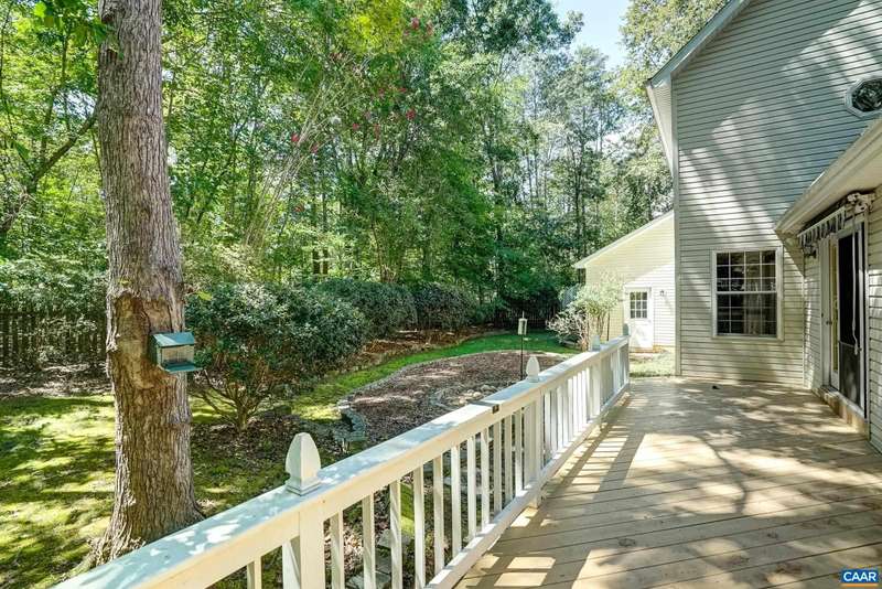 Welcome to this well maintained Cape Cod style home in Lake Monticello. This home features an open family room with vaulted ceilings, fireplace, and built in bookshelf that opens to the back deck overlooking the private backyard. Enjoy gatherings with the formal dining room. The spacious eat-in kitchen offers plenty of room for causal dining and cooking. The kitchen features white cabinets with new LVP flooring. The laundry room provides direct access to the attached garage. The spacious first floor primary bedroom has an ensuite bathroom with walk in closet. The second floor features a second primary suite with a spa-like bathroom and spacious walk in closet. Enjoy the private fenced in backyard with a walk out deck. The interior features freshly painted interiors with new LVP flooring in kitchen. The roof was replaced in 2022/2023. Enjoy the wonderful amenities that Lake Monticello has to offer! Winter views of the Lake.