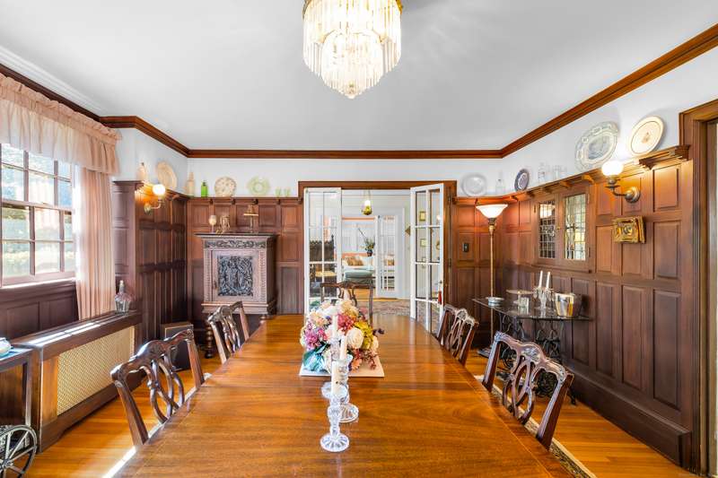 Wonderful arts and crafts style "English Cottage" built in 1907 is in close proximity to Elizabeth Park. Designed for his own residence by the architect Harry Hilliard Smith, this charming home has a brick first story under a projecting second story in rough cast stucco. There is 4,388 square feet of living space with a total of 14 rooms, 6 bedrooms, 4 full baths and one half bath, set on .46 acres. The National Historic Registry of Historic Places identifies this home as an early 20th-century Tudor Revival and Craftsman-inspired residence. When you enter, a gabled entrance greets you with a multi-paned doorway and a foyer that retains the original converted gaslight ceiling fixture. The graceful staircase turns near the top to reveal a window leading to the former music room above. The dining room is like a glimpse into England's past, with dark paneling and built-in china cupboards and tine leaded-glass panes. A nicely proportioned living room with fireplace and French doors leads to