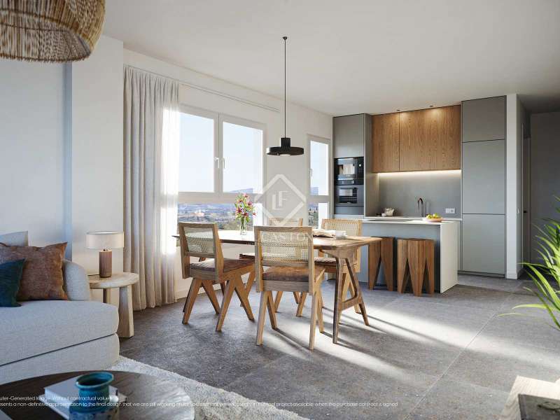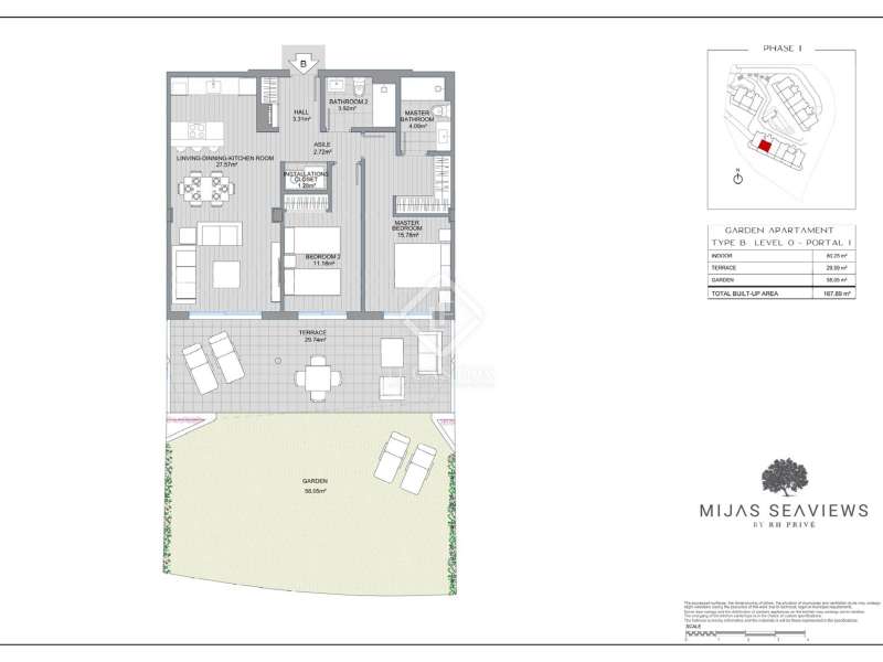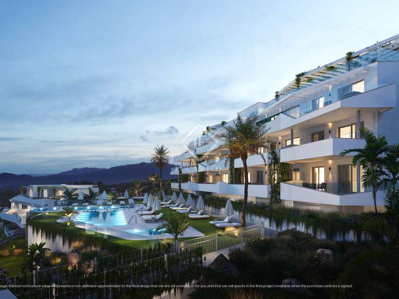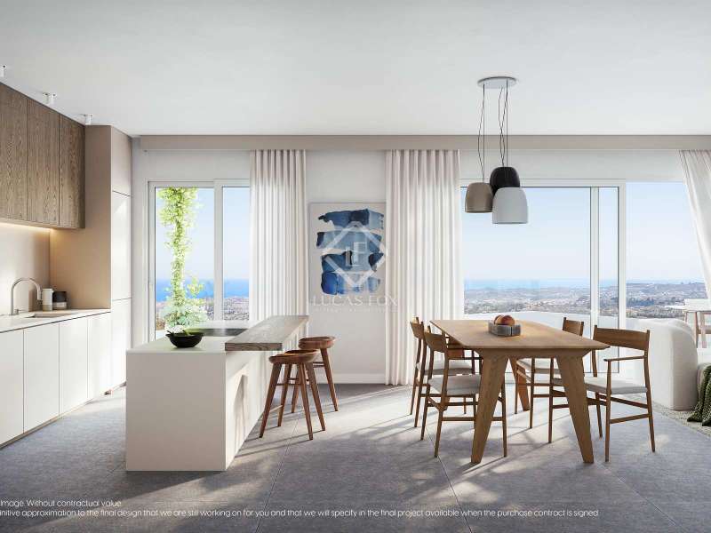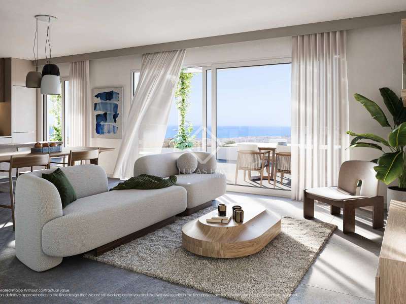 Mijas Sea Views Apartments is a unique residential complex where quality, nature, comfort and innovation come together to provide an enviable lifestyle in a prime location in the mountains of Mijas with the beaches of Fuengirola on the doorstep. The complex consists of 50 south-west facing apartments divided into 3 construction phases. This particular 167 m² property is an exclusive garden apartment with an open-plan living, dining and kitchen area, 2 bedrooms and 2 bathrooms, as well as a wonderful private outdoor space of 88 m². The buildings have been designed with a focus on privacy, incorporating hanging gardens that fall down the facade, also blending the development into its natural surroundings. The landscaped areas with walkways and hanging gardens envelop the private amenities of Mijas Sea Views, offering an outdoor infinity pool, a separate children's pool, a wellness area with a sauna, Turkish bath, a grill area and fully equipped functional training space. The apartments are flooded with natural light, creating a warm and welcoming atmosphere, with a spacious open-plan living and dining area, bedrooms with en-suite bathrooms, walk-in wardrobes and a private jacuzzi in the case of the penthouse properties. The buyer may choose from an extensive range of finishes for flooring and tiling, fittings and toilets, as well as different finishes for kitchen furniture and extras to give the apartment a touch of distinction. The standard finishes and features include porcelain stoneware flooring throughout the home, bathrooms with Solid Surface showers, Laufen sanitaryware and fittings from Hansgrohe or similar brands. Italian-designed kitchens from the renowned Italian brand Arredo3 or similar brands come fully equipped and furnished, with high and low cabinets, Silestone countertops and appliances from Siemens or similar brands, the majority of which have an "A" energy rating. Climate control, home automation and video entry systems are just a few more of the contemporary luxuries found in these brand-new homes. One parking space and storage unit is provided per unit, with pre-installation for a recharge station for electric vehicles in the garage. Please contact our team for more information regarding this excellent new home on the Costa del Sol.