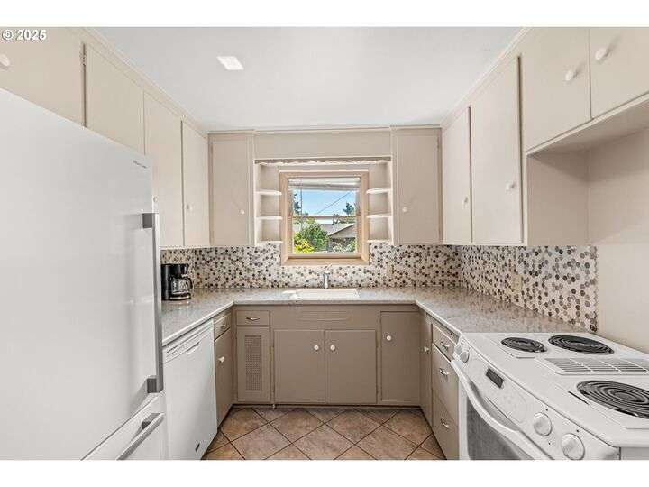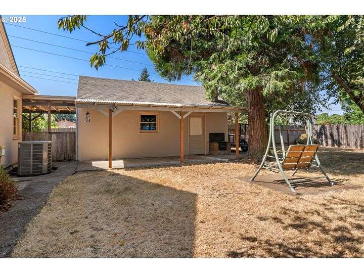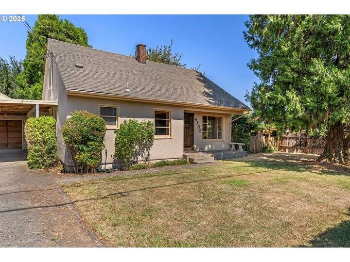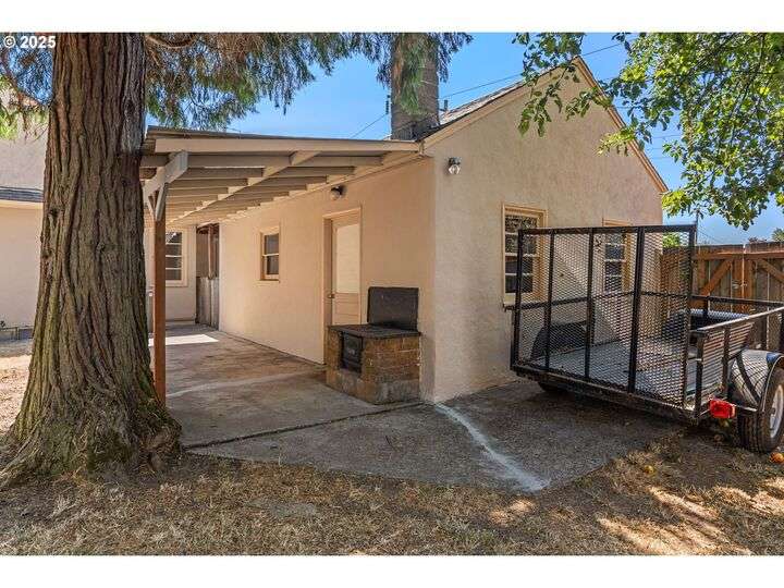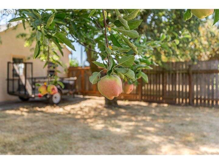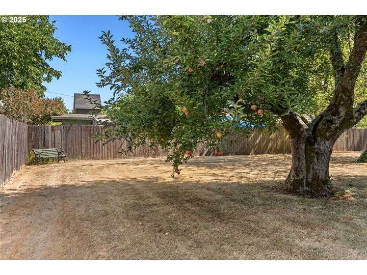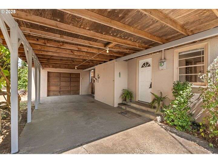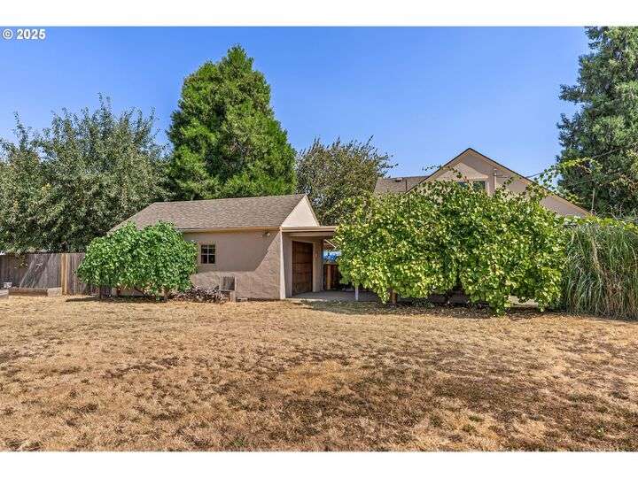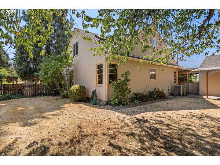 Mid-century Charmer! Freshly painted stucco exterior and interior plaster walls with coved ceilings. Beautiful refinished oak floors throughout the downstairs. New granite kitchen counter, backsplash, sink, and refrigerator. Spacious master suite upstairs with new vinyl plank flooring, versatile office area, and full-bath. Indoor laundry area in mud room. Oversized one-car garage plus carport. Plenty of room for RV parking and gardening on spare lot. Fully fenced backyard with covered patio. Kiwi, grape, wisteria, and rose arbors. Energy efficient heat pump with air. Non-smoking home.